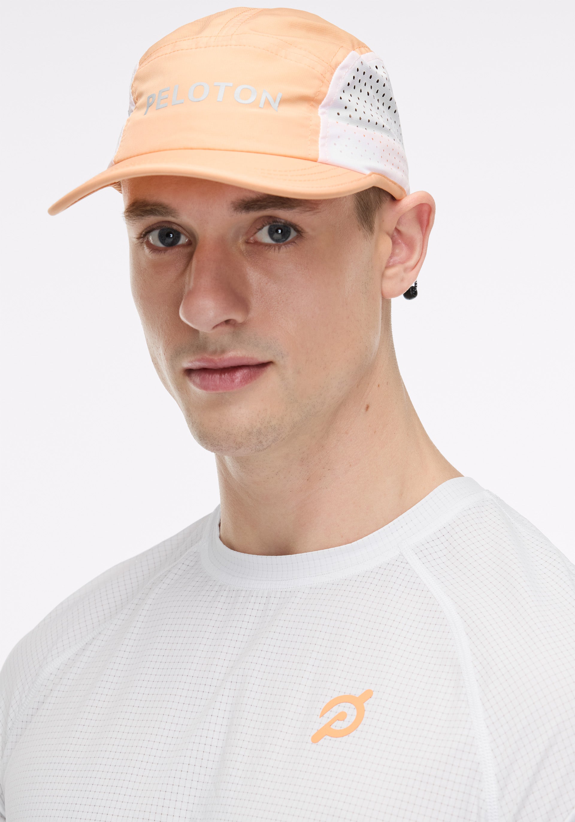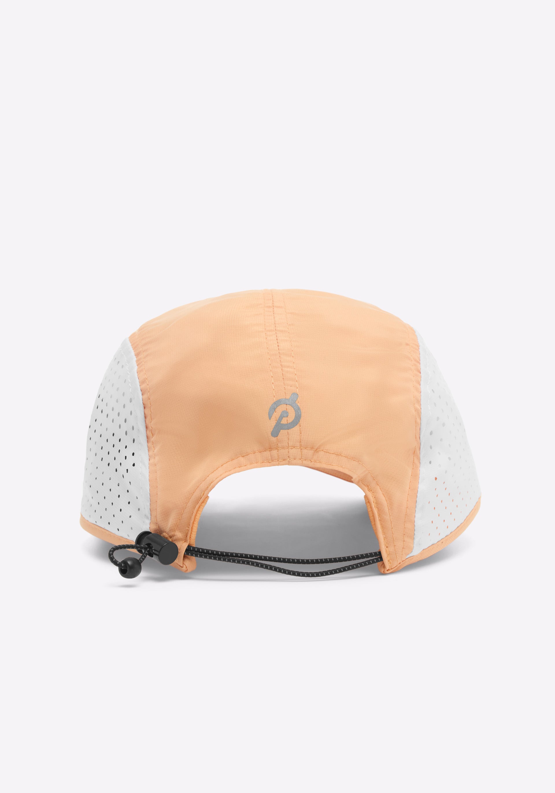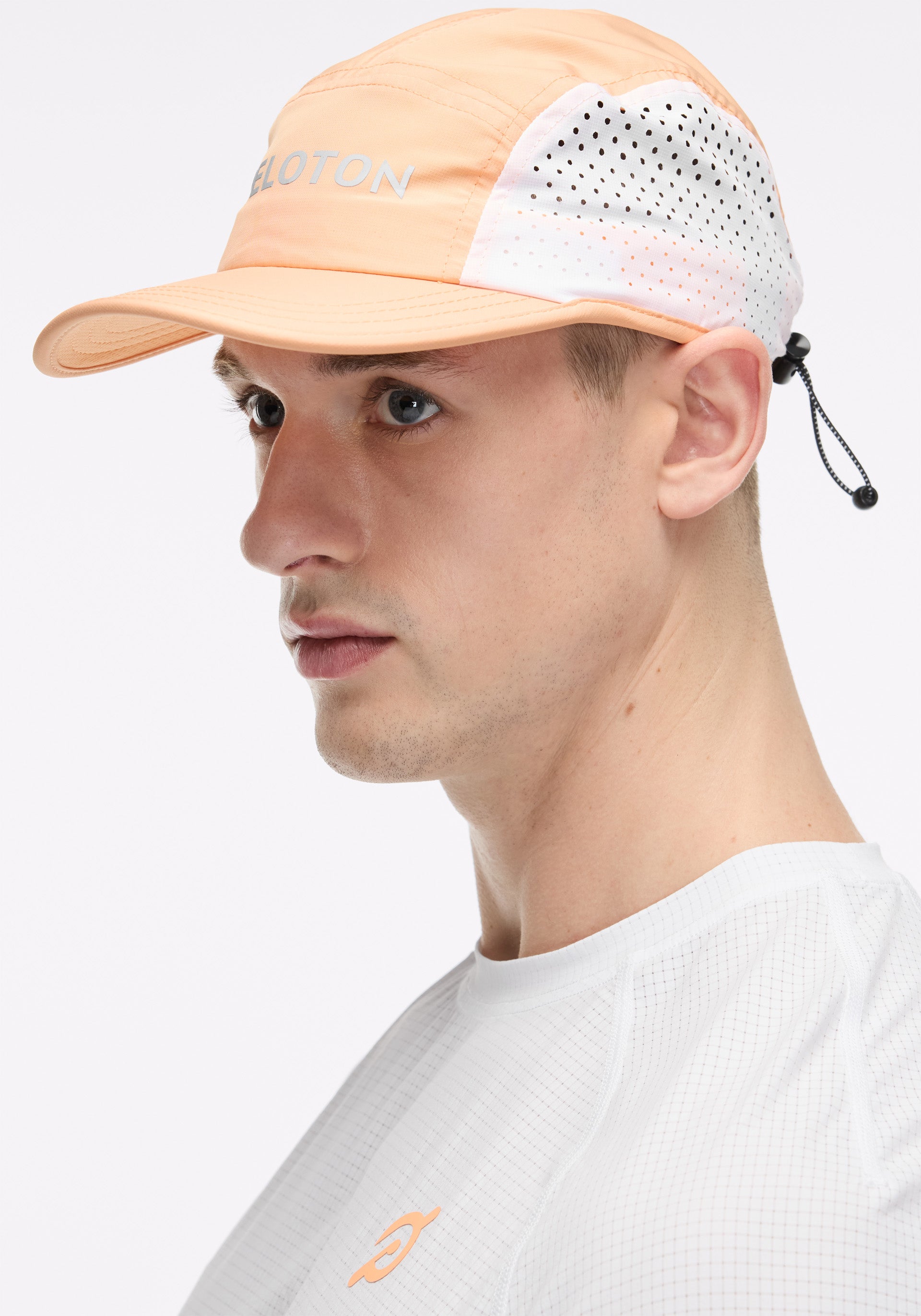 Multi panel run cap with topstitched bill and adjustable bungee back
