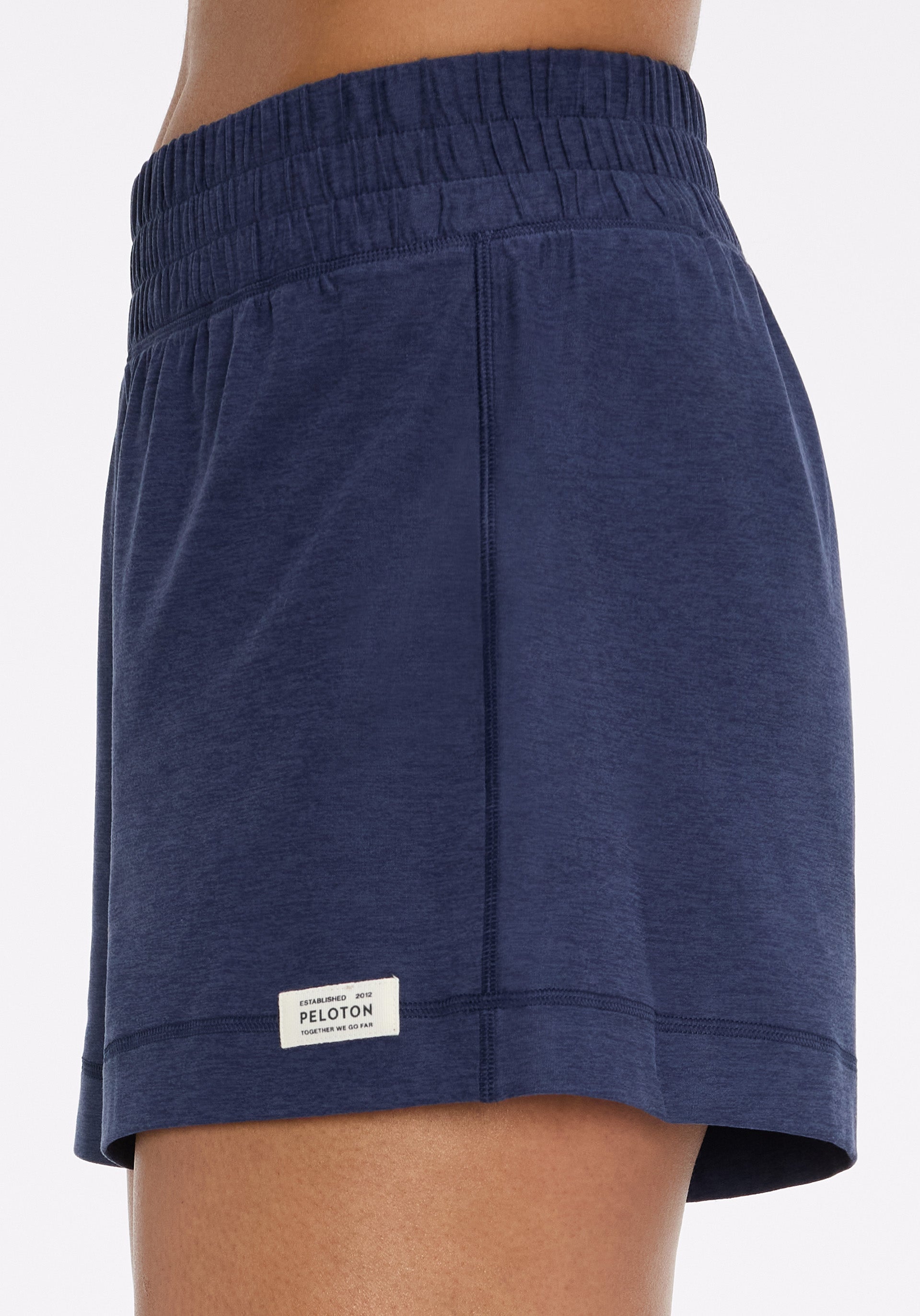 • High rise, 3” inseam short with wide encased elastic waistband