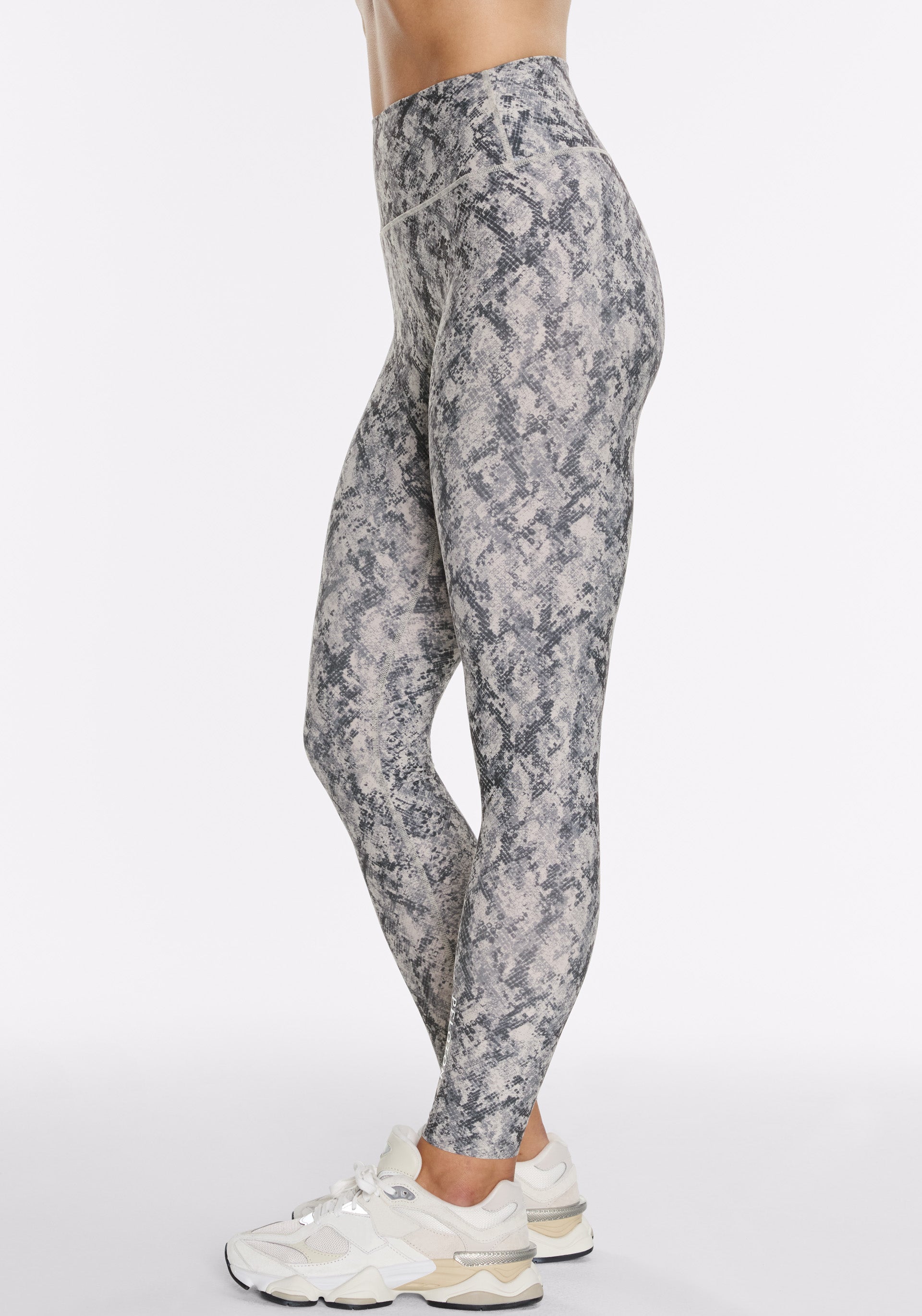 • High rise, 25" inseam legging with medium compression, back stash pocket, and elongated gusset