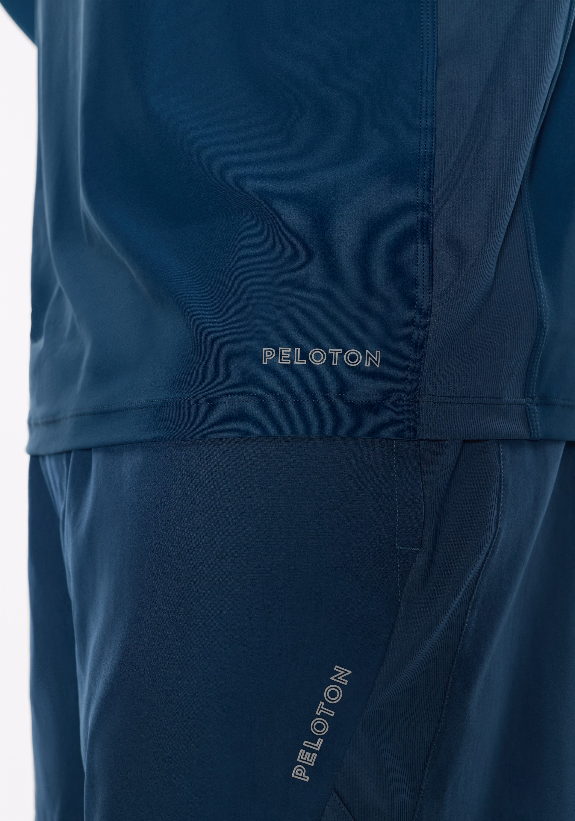 • Peloton wordmark at bottom left hem