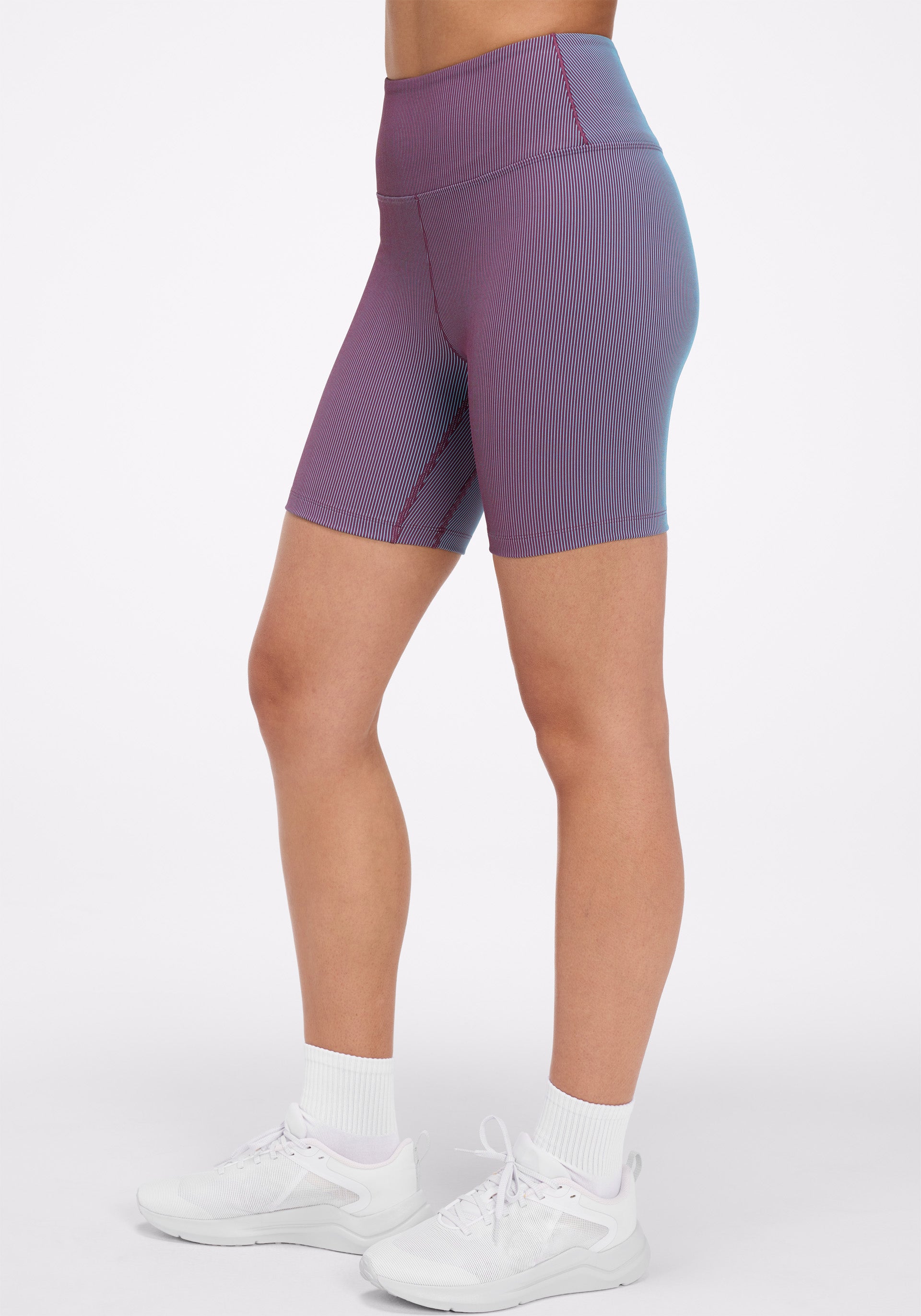 High rise, 7" inseam bike short with medium compression, back stash pocket, and elongated gusset