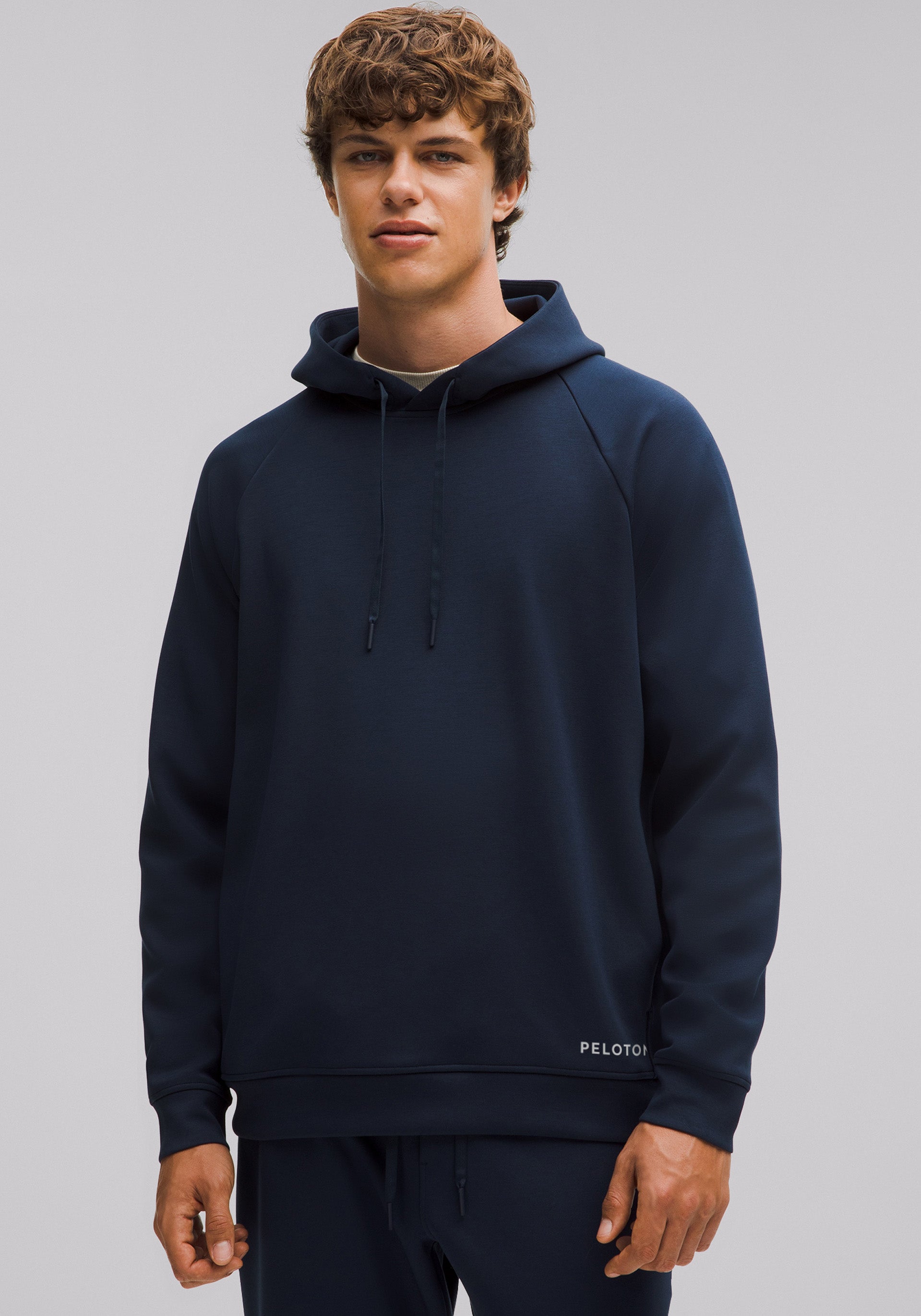 Pullover hoodie with locker loop for easy hanging and hand pockets with hidden phone and coin sleeves