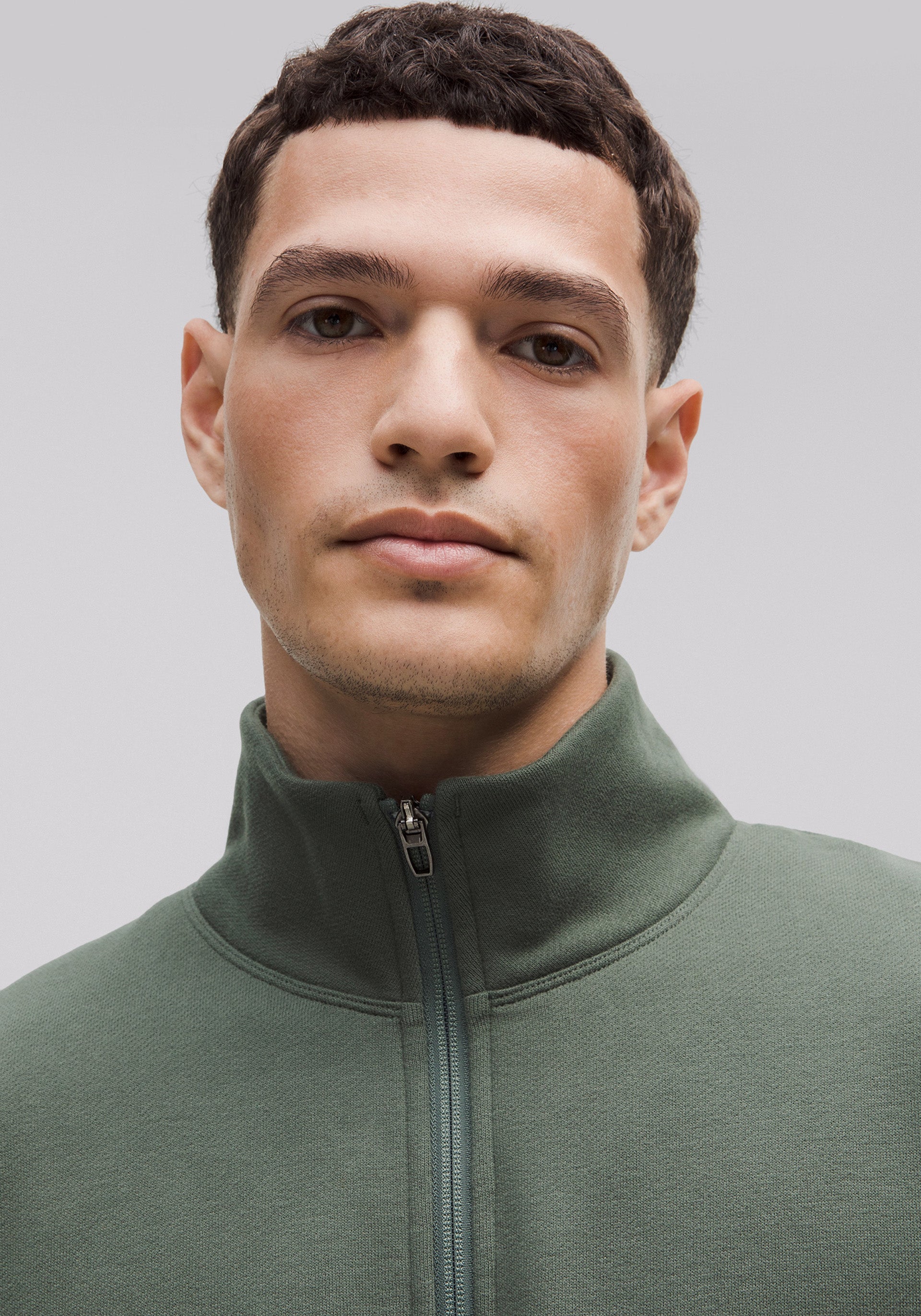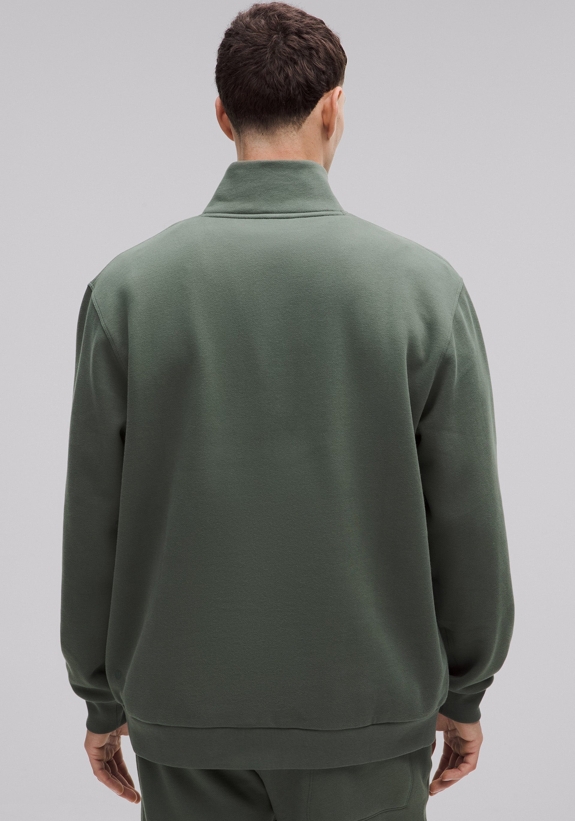 Relaxed half zip with rib detailing at cuffs and bottom band