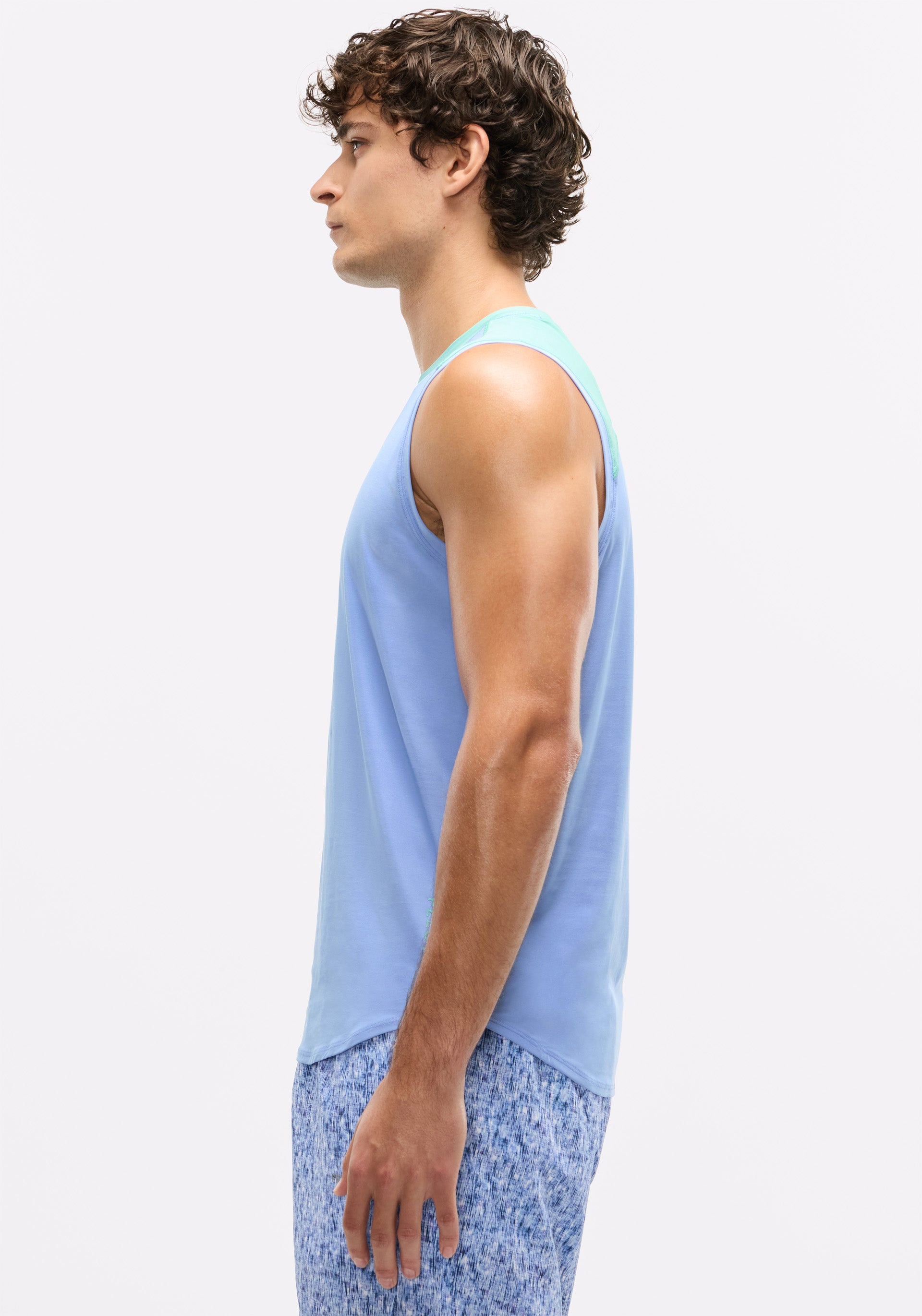 Muscle tank with contrast neckline and shoulder piecing