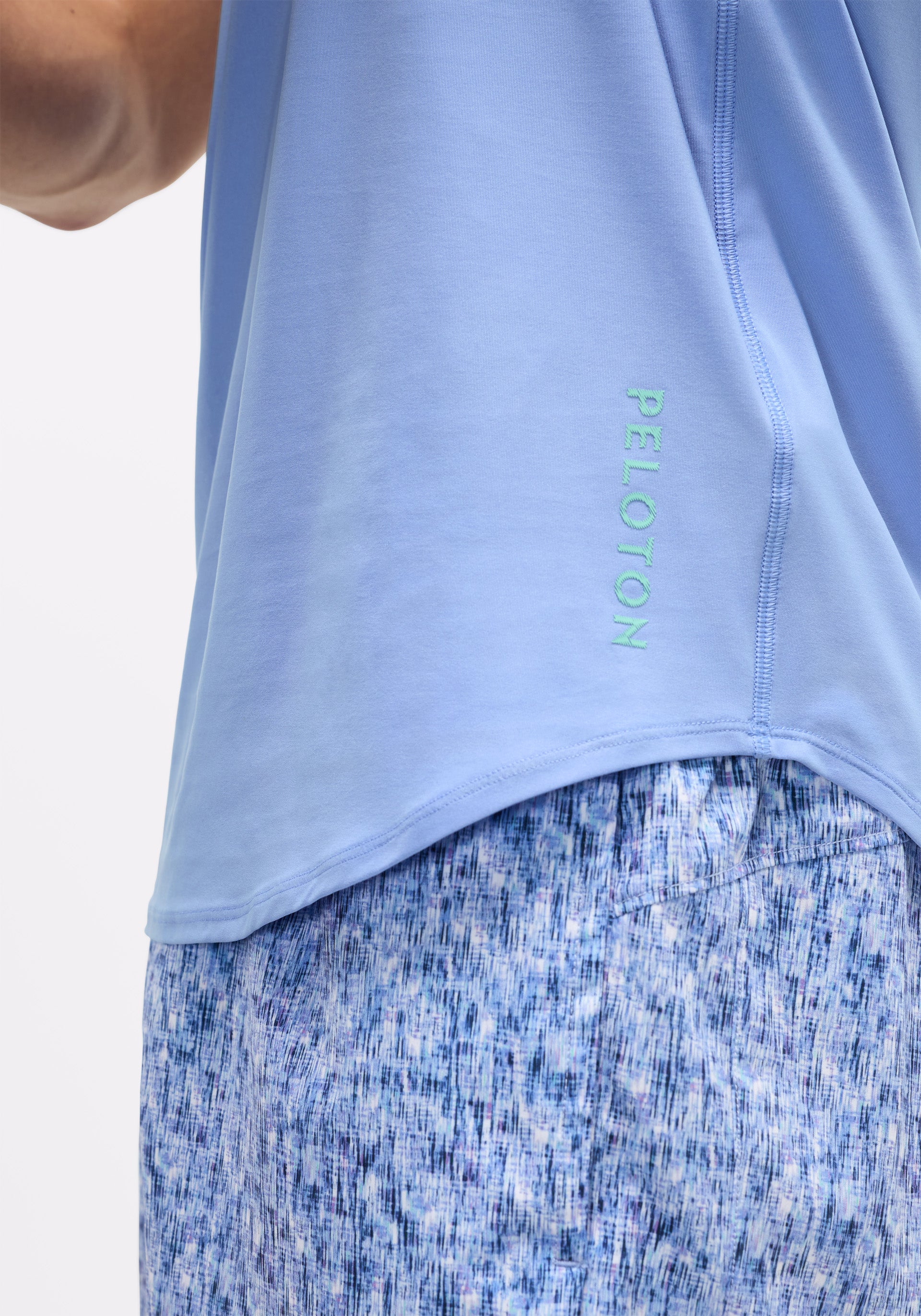 Peloton wordmark at bottom left hem