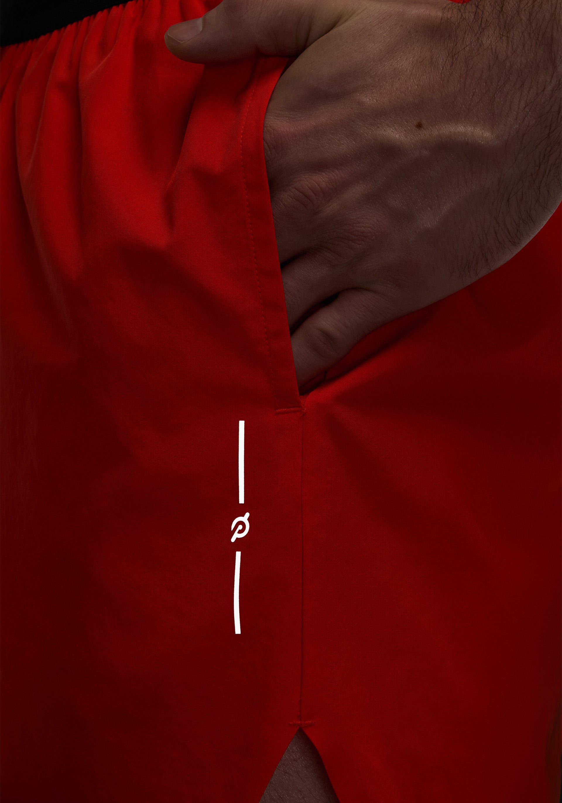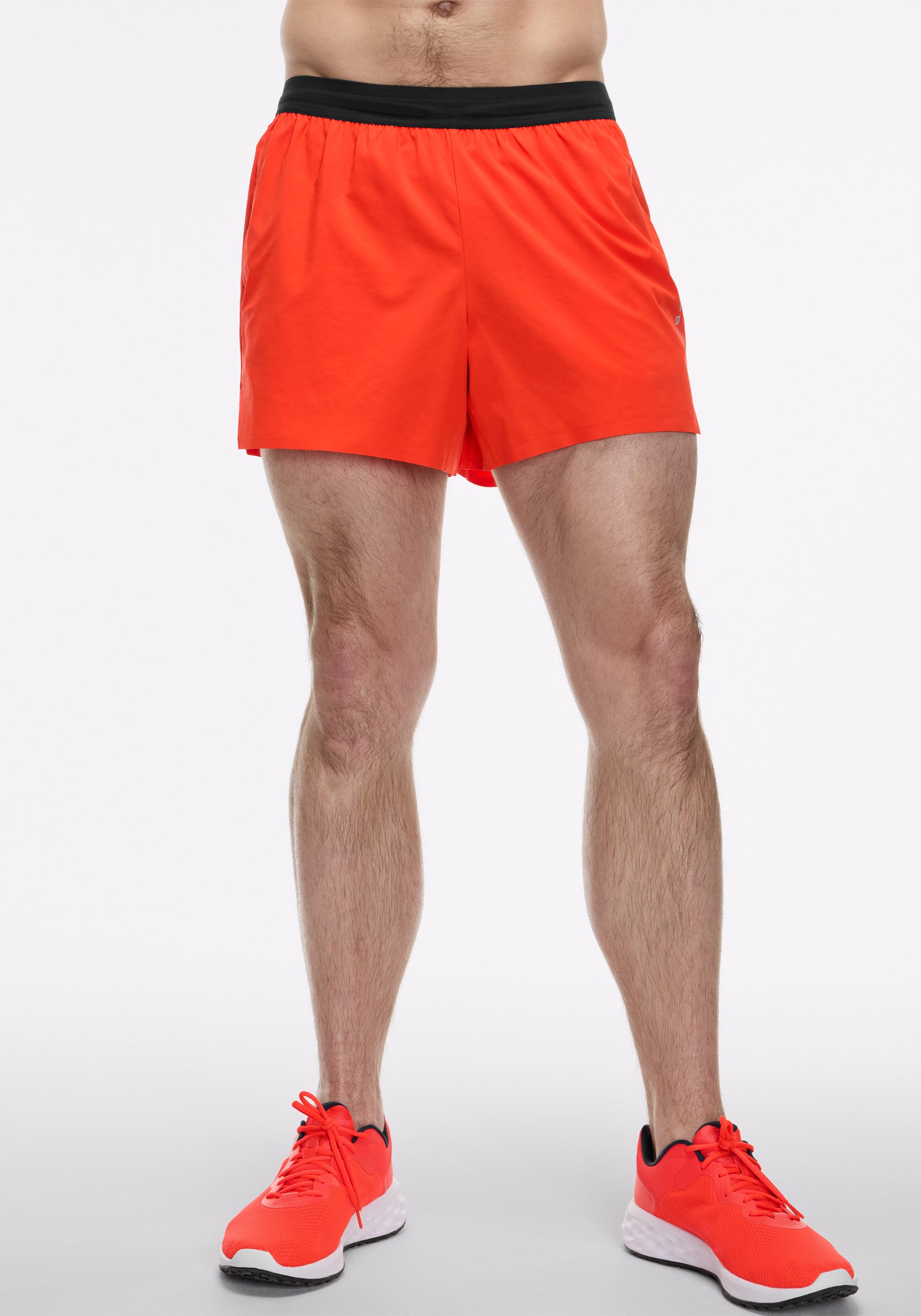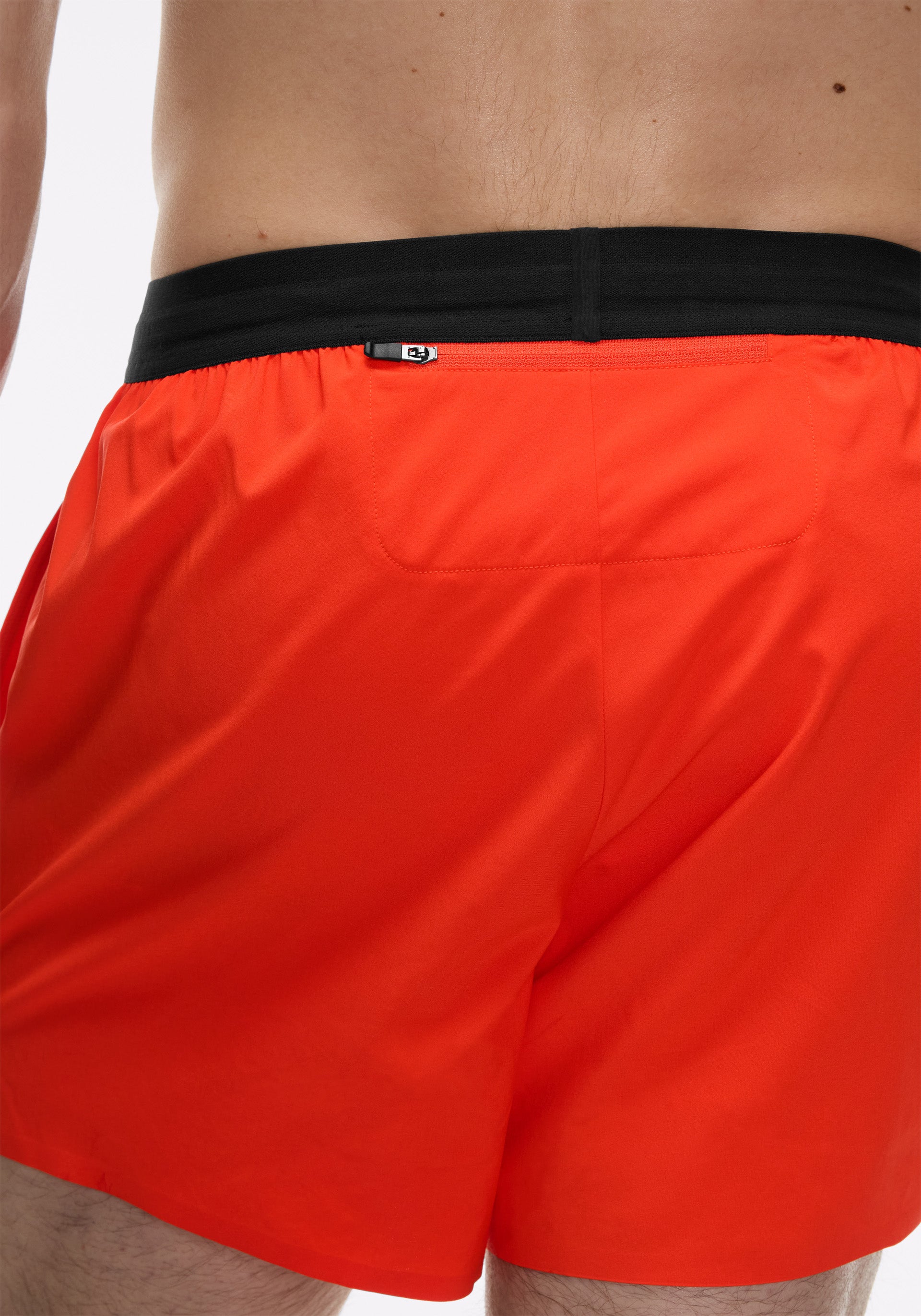 • 5" inseam brief-lined short with elastic waistband, interior drawcord, functional gusset, side hand pockets, and center back zip pocket