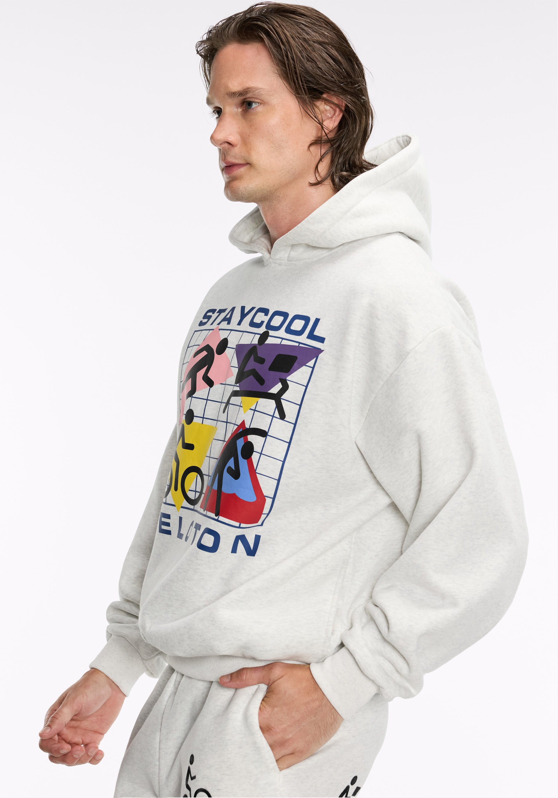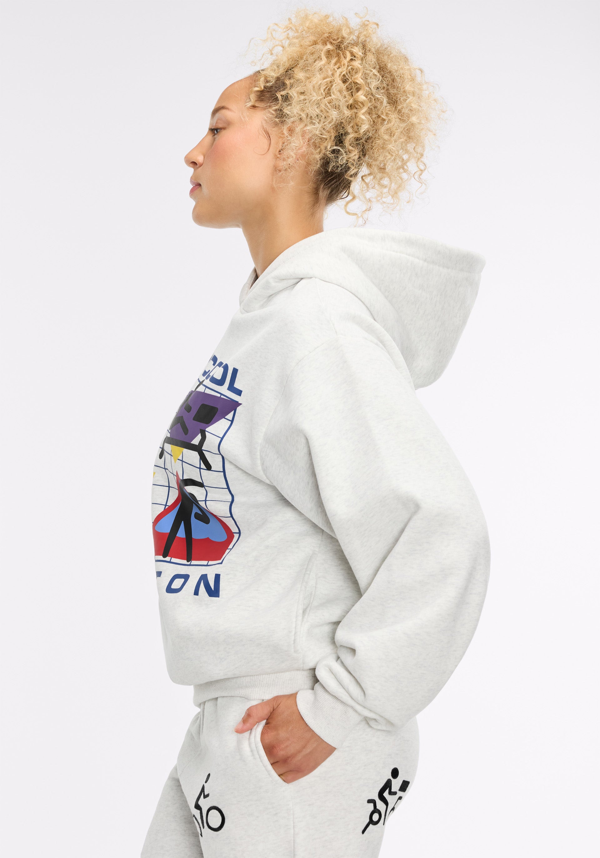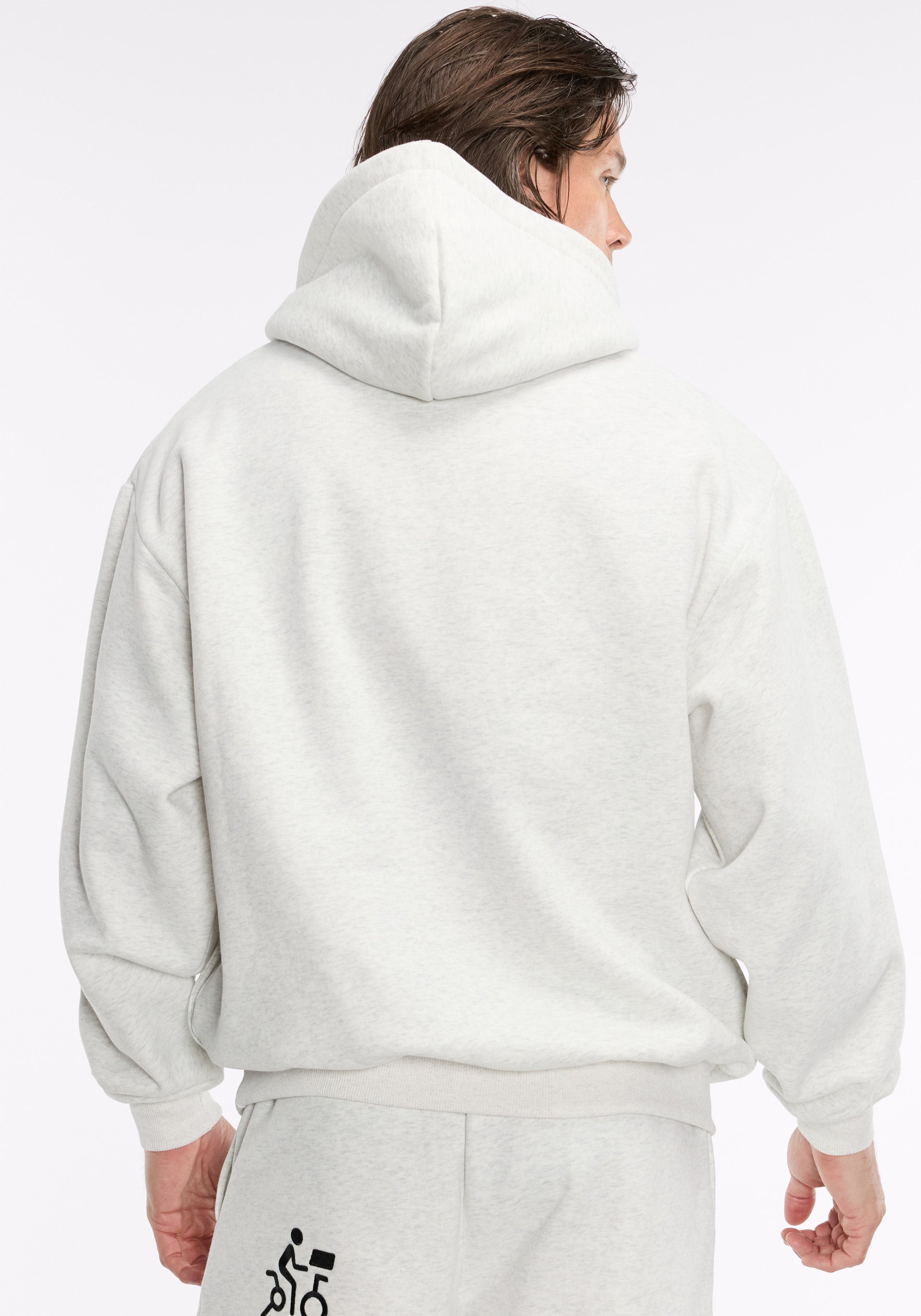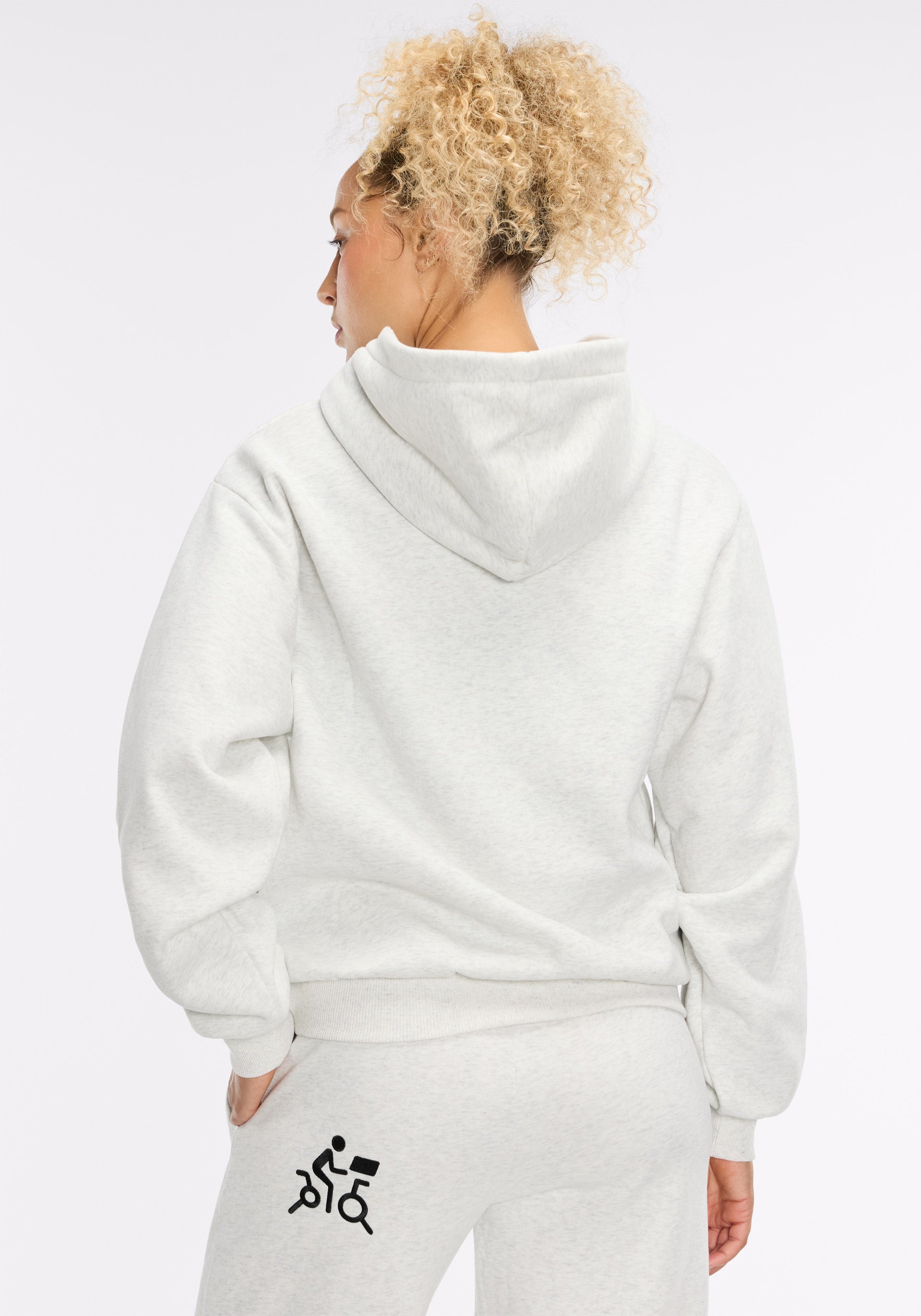 Fleece sweatshirt with an exaggerated hood and kangaroo pocket detail
