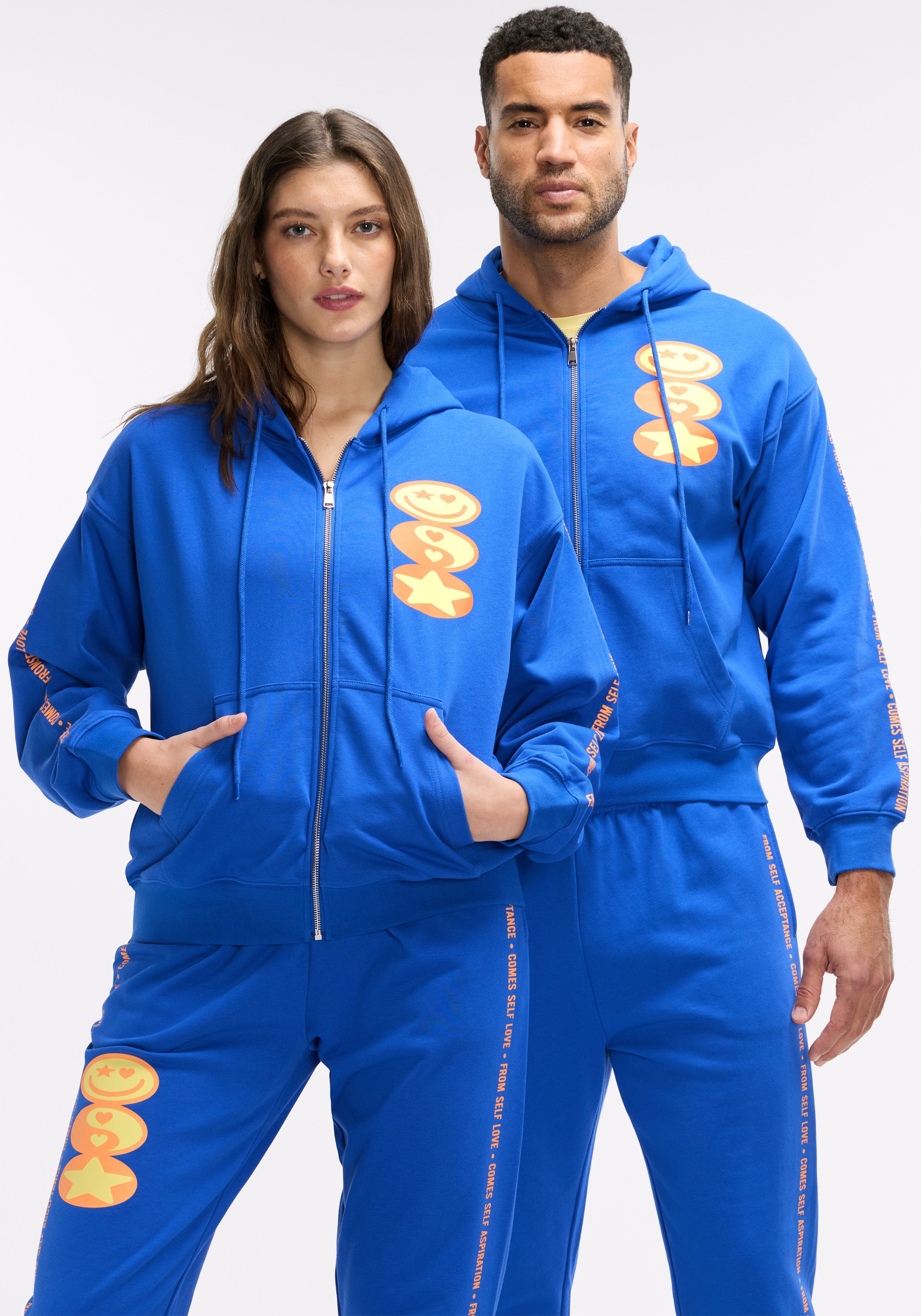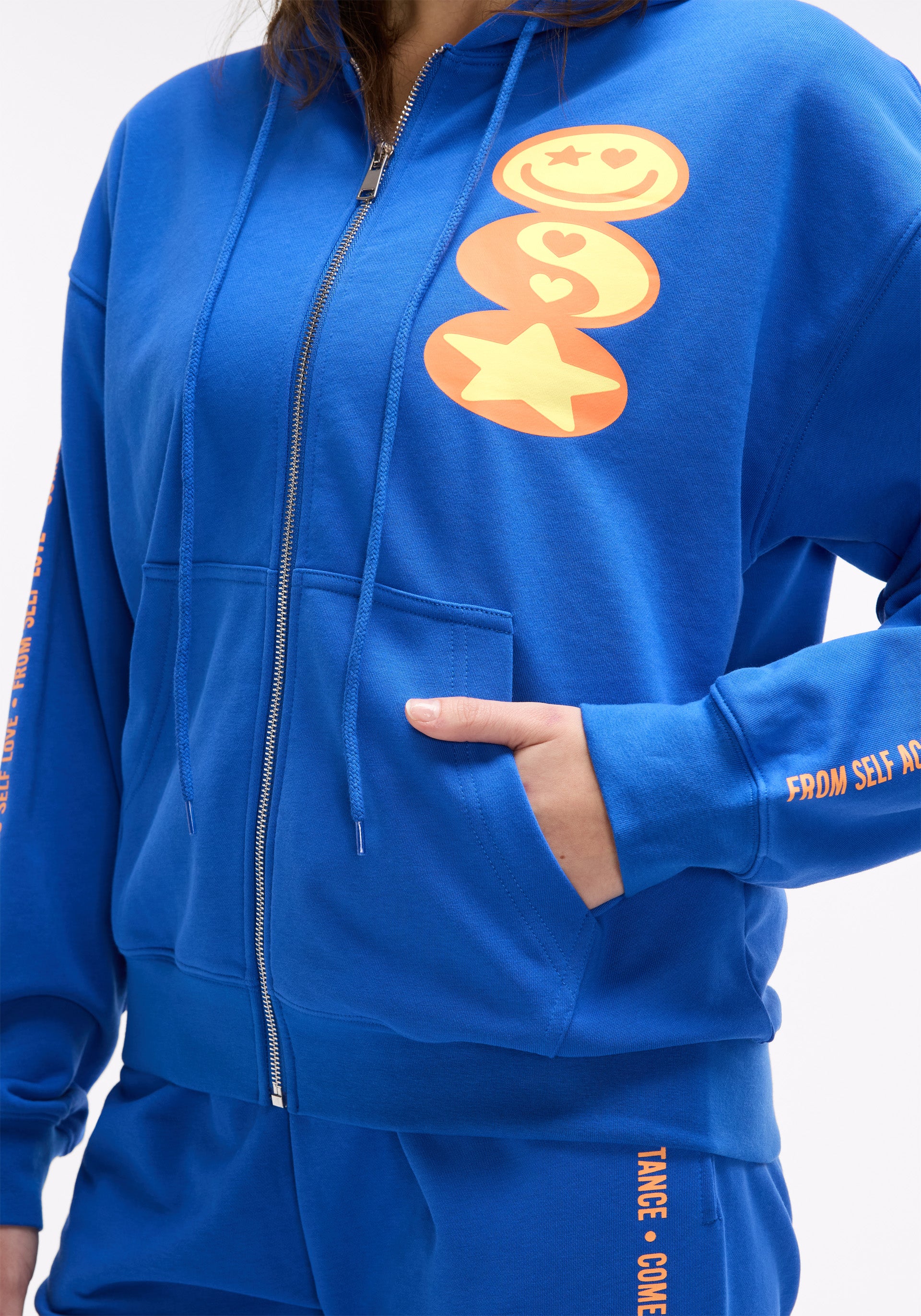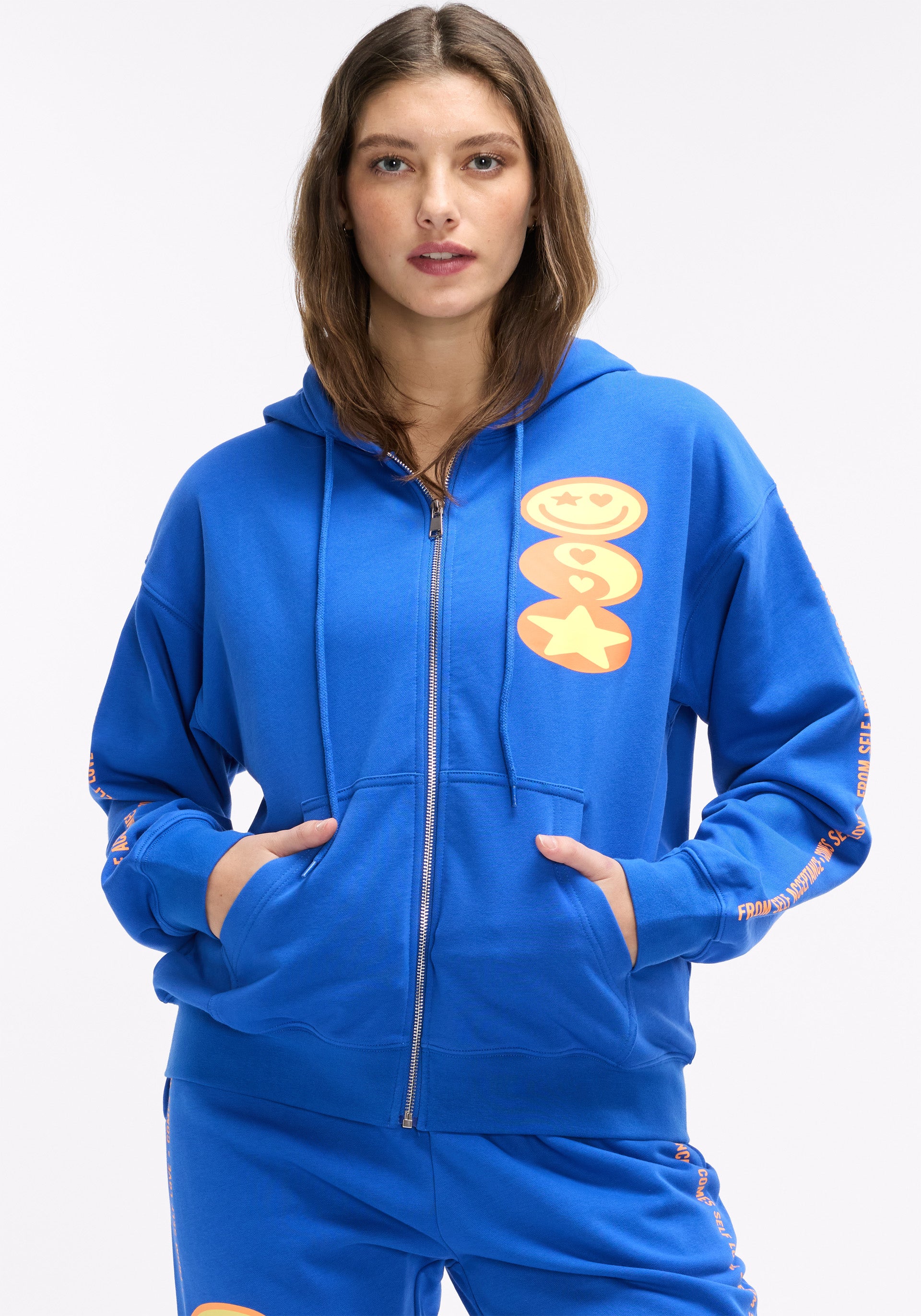 Cotton fleece zip-up with adjustable drawcord at hood and hand pockets