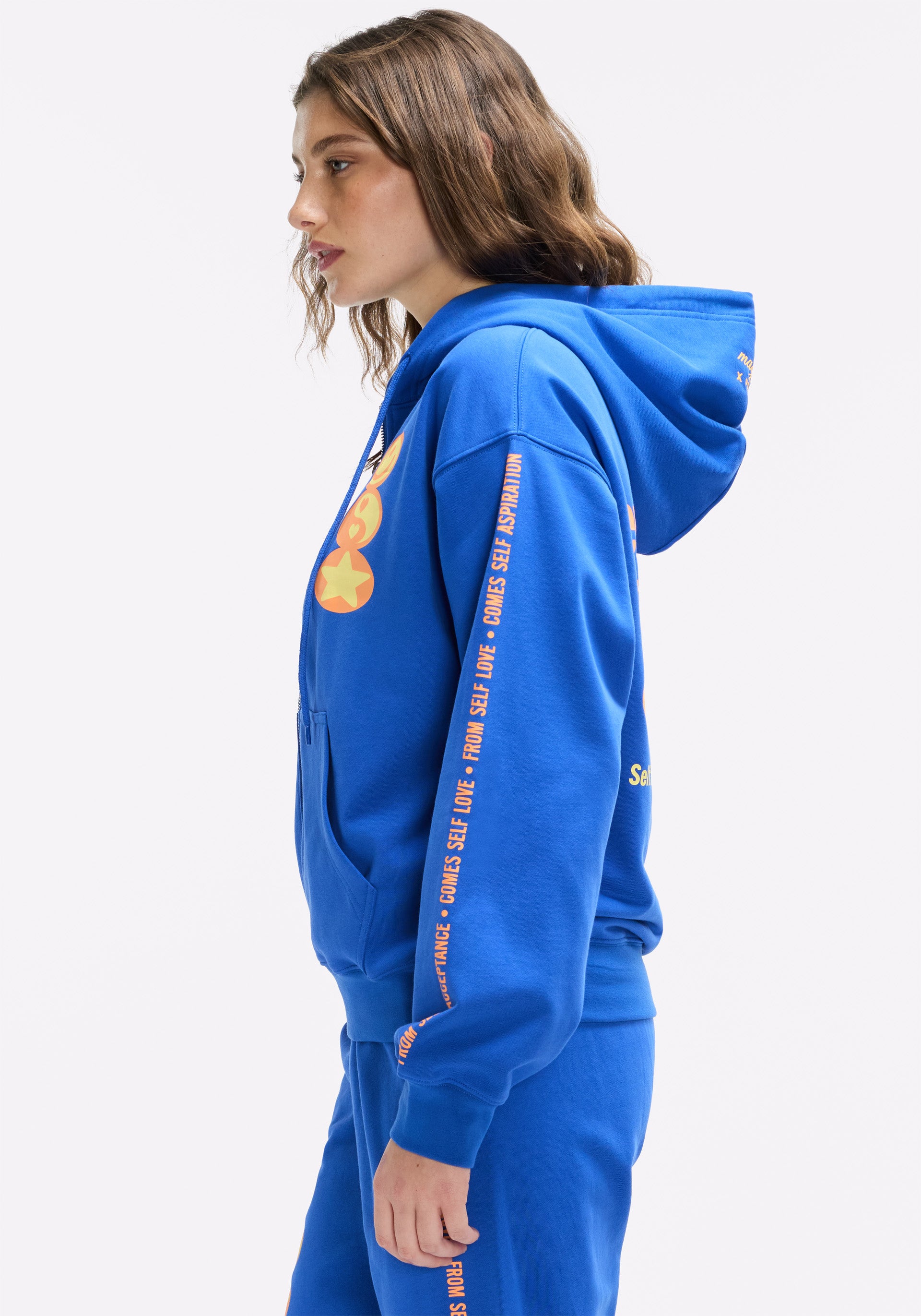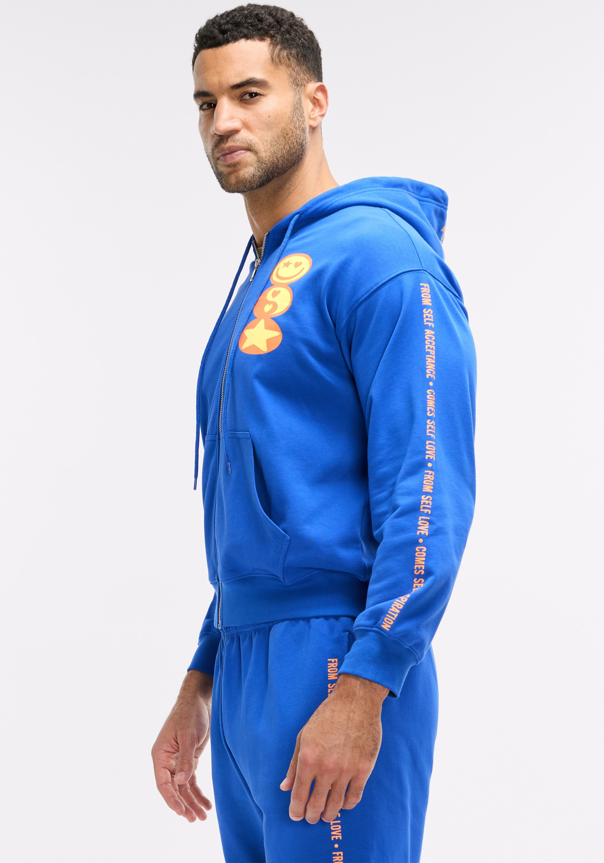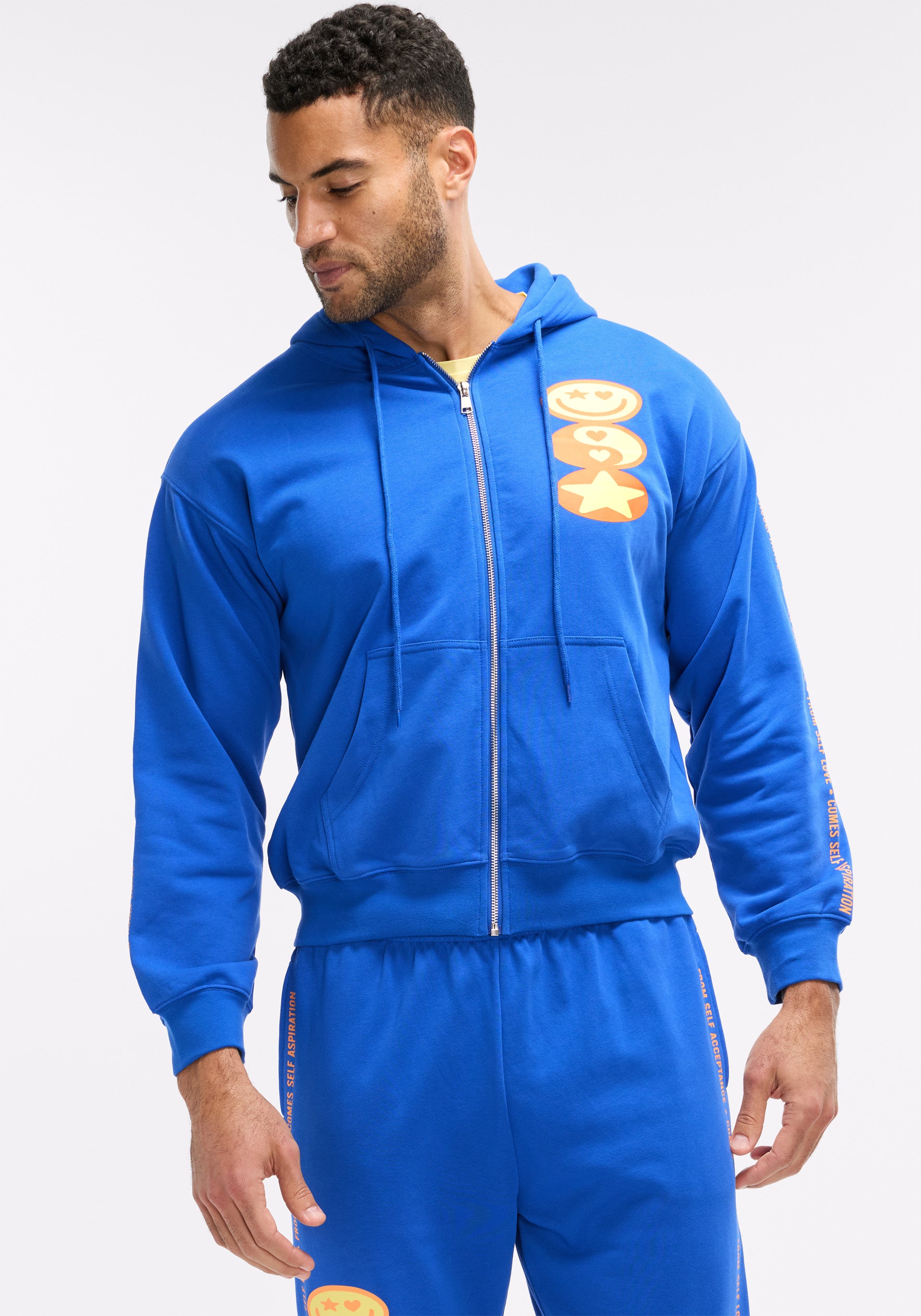 Cotton fleece zip-up with adjustable drawcord at hood and hand pockets