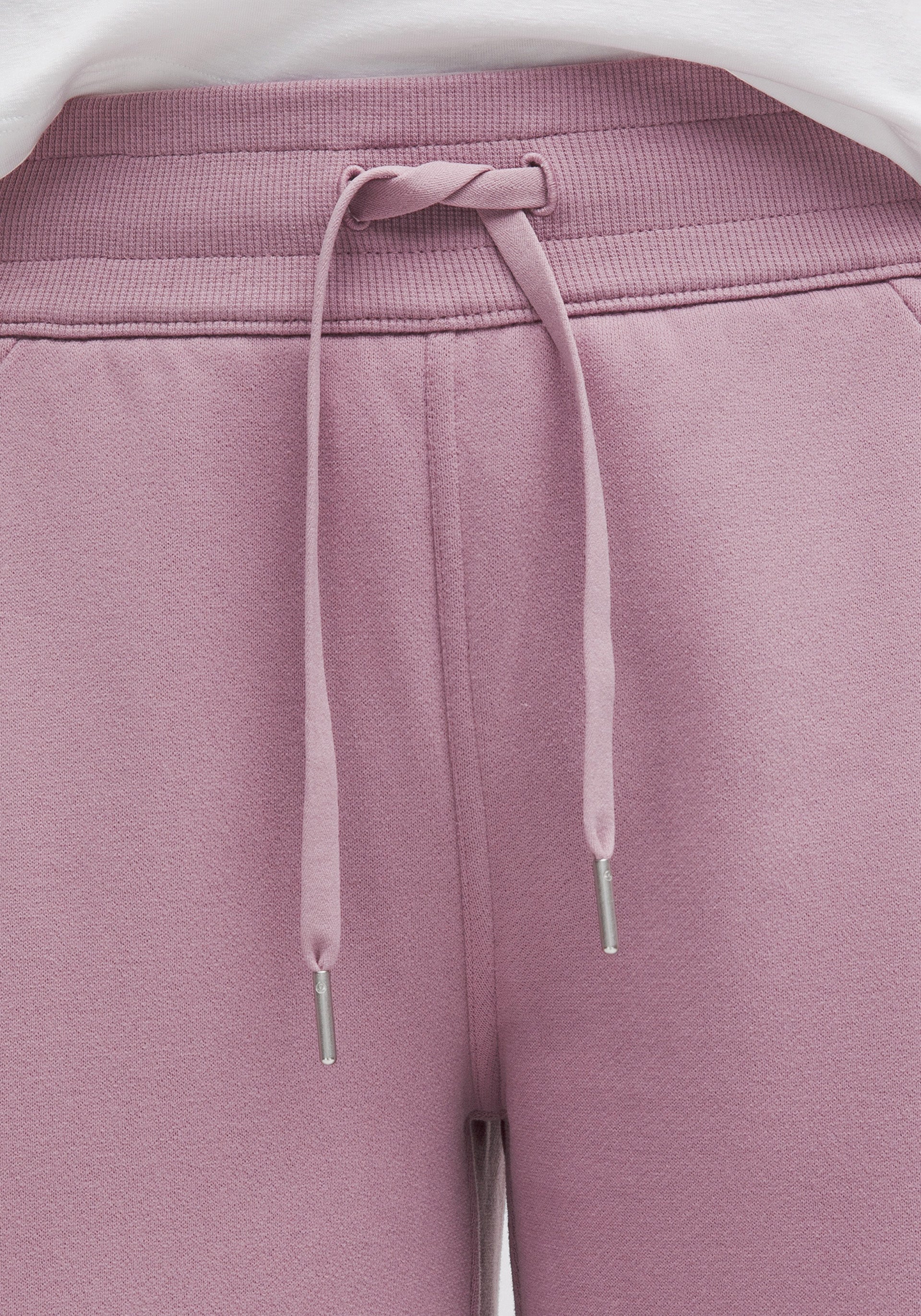 • Mid rise, sweatpant with hand pockets, hidden card sleeve, and a drawcord that can be worn out or hidden inside for a flat waistband