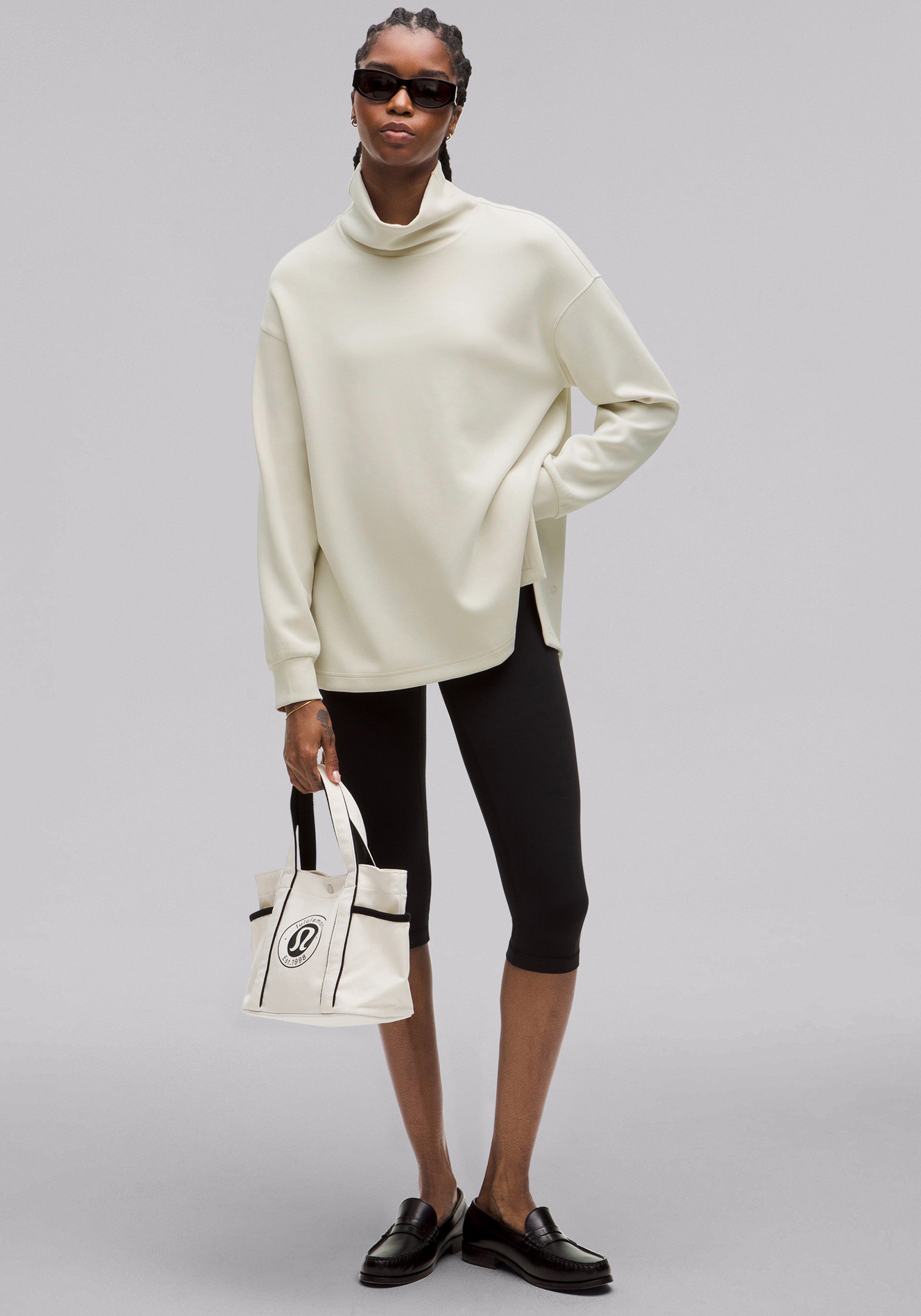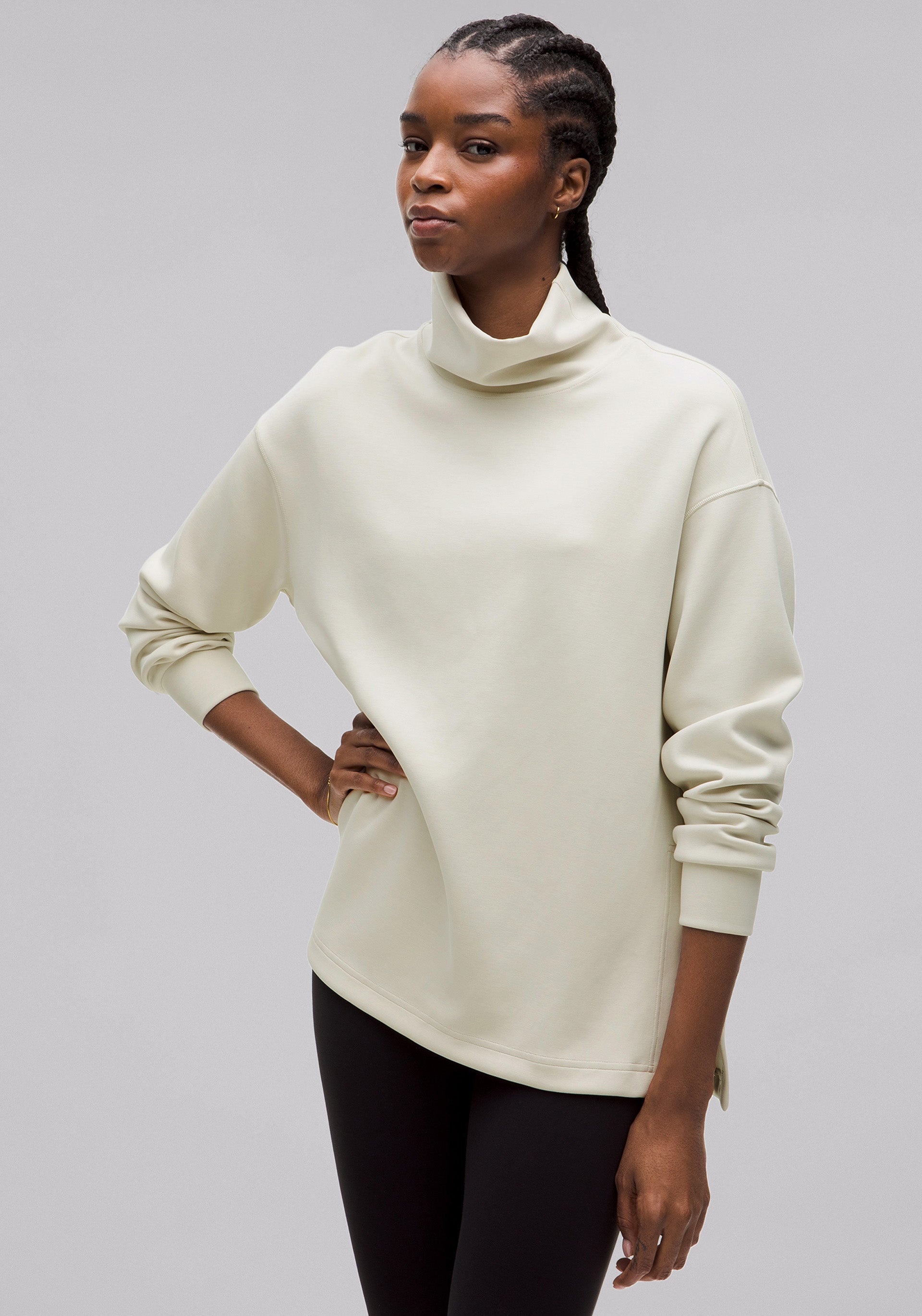 Shoulder season, hacked. With a peach-fuzz soft outside and cool feel next to skin, this funnel-neck pullover is perfect for those days when the weather can't make up its mind.