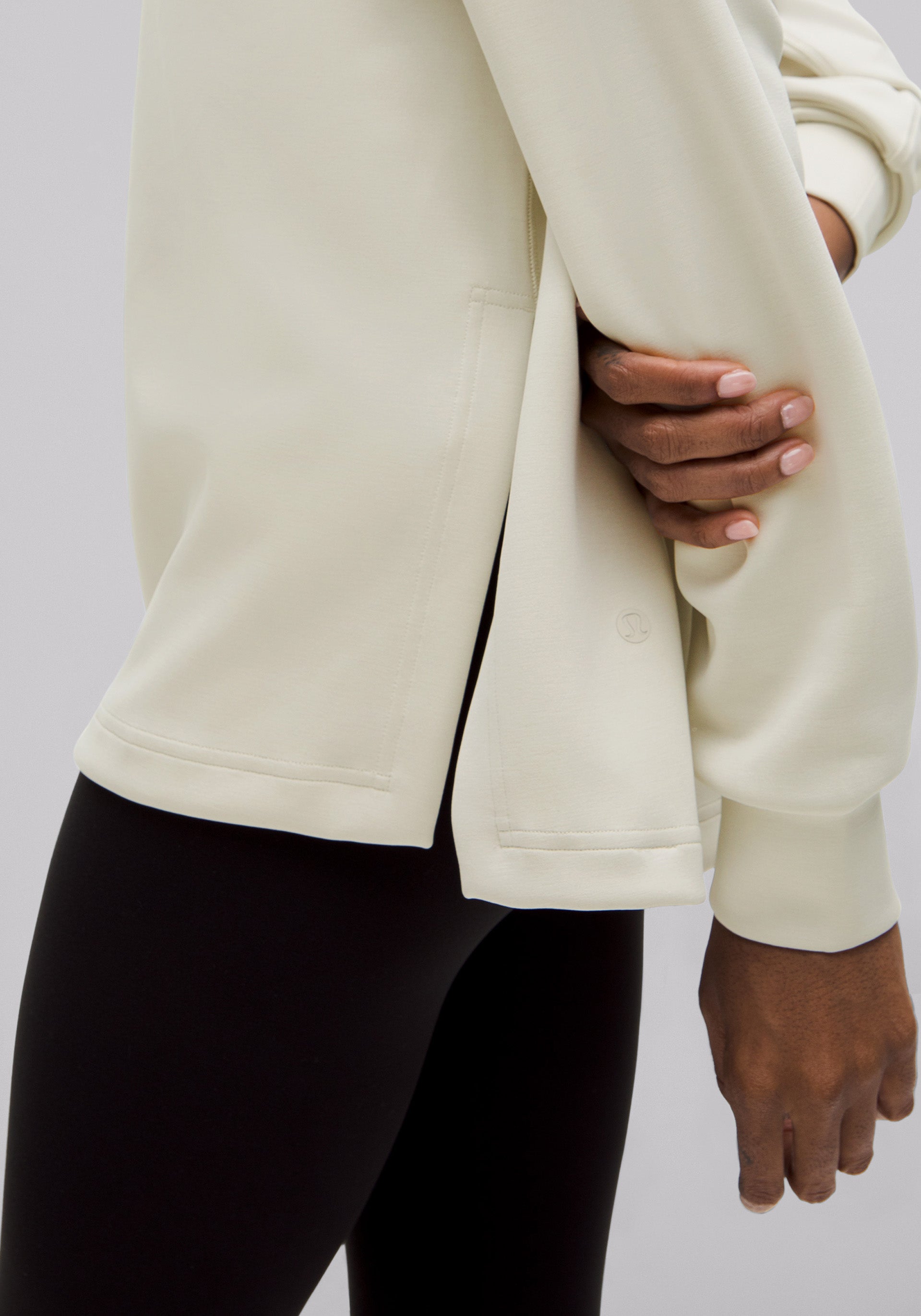 Relaxed, pullover with high side slits allowing you to tuck it in at the front and still keep your bum covered