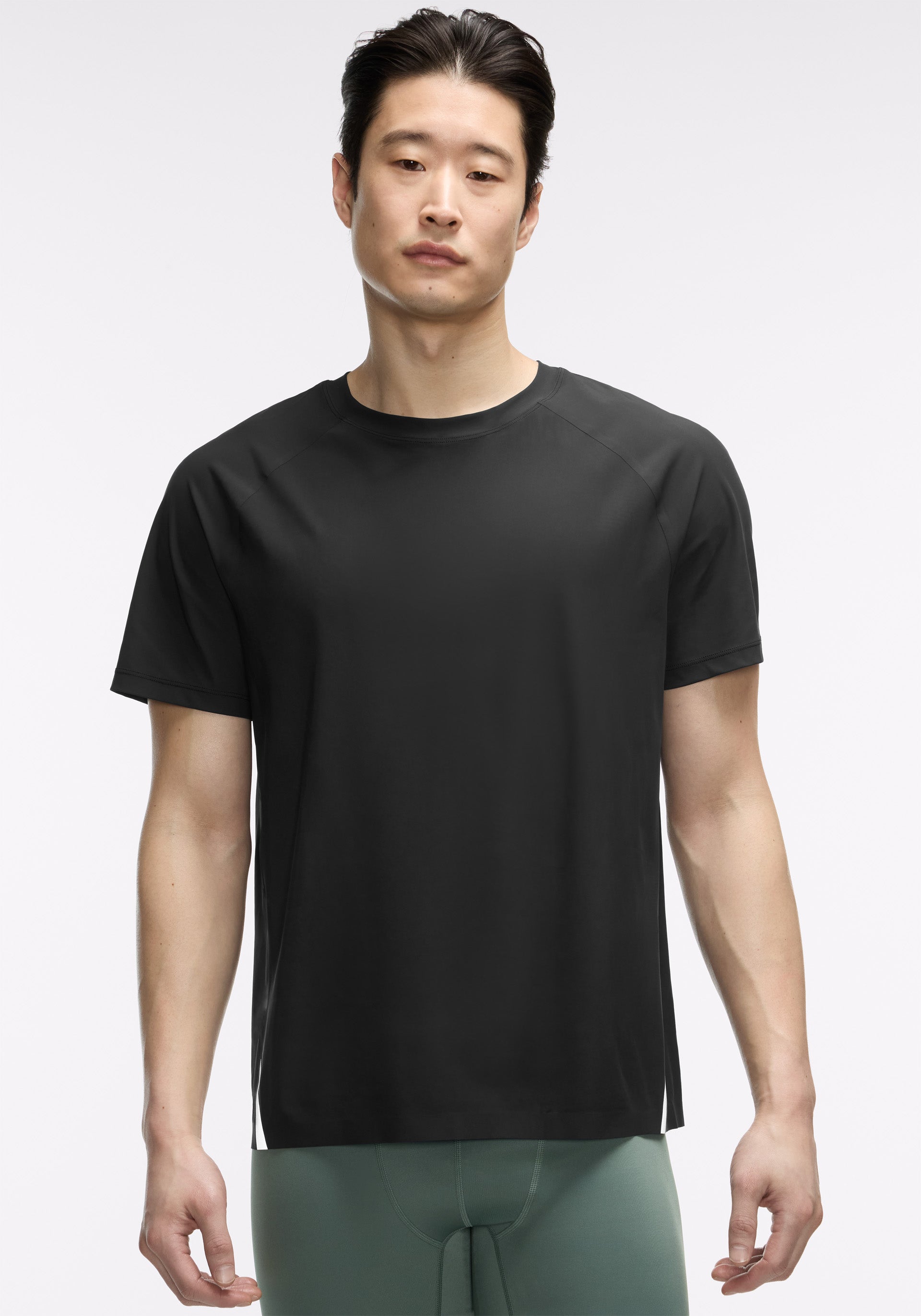 Raglan short sleeve with reflective piecing at side and bonded seams at hem