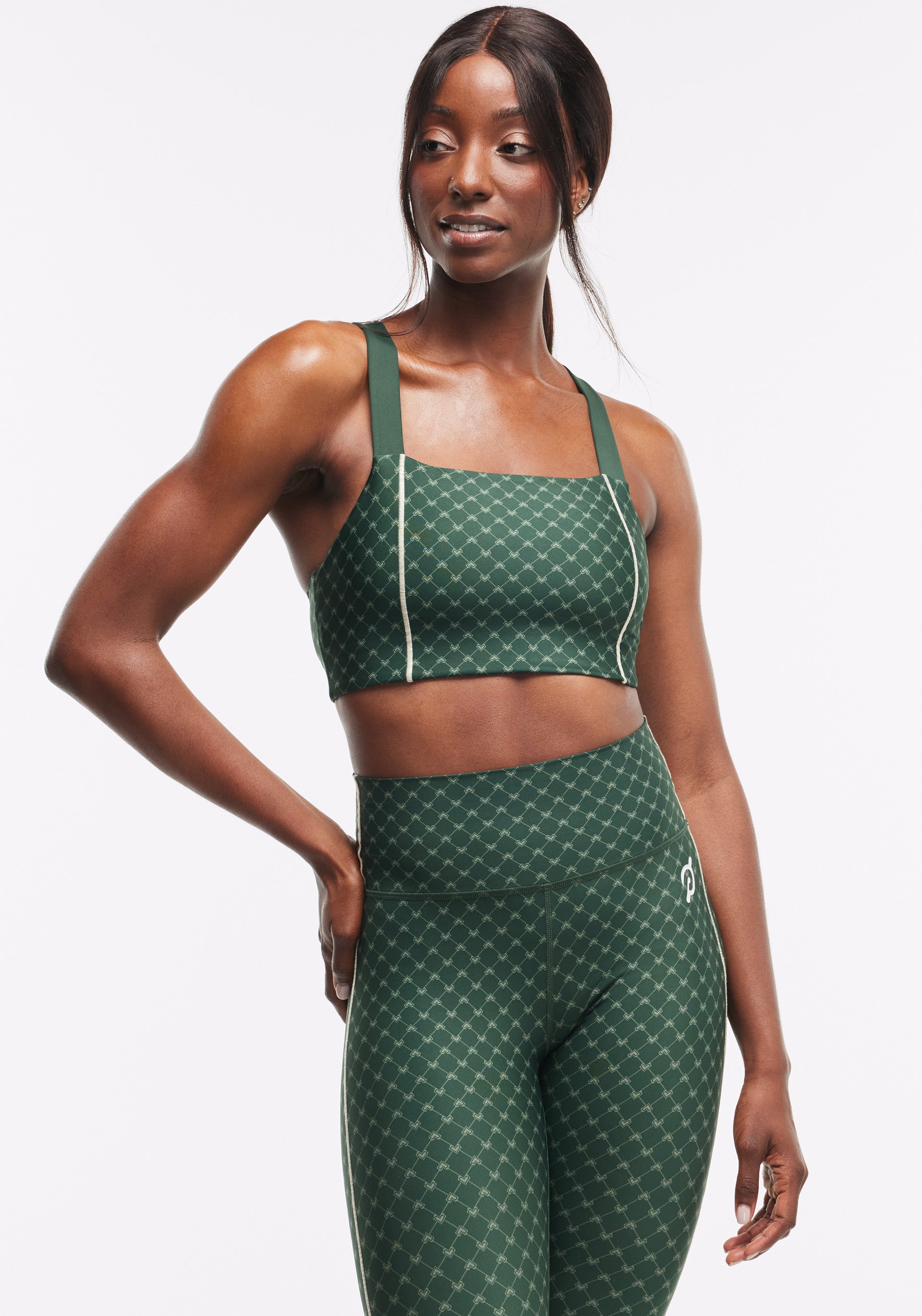 • Low-Medium support square neck bra with contrast stitch, elastic straps, interior sweat channel encased elastic band, and removable cup pads