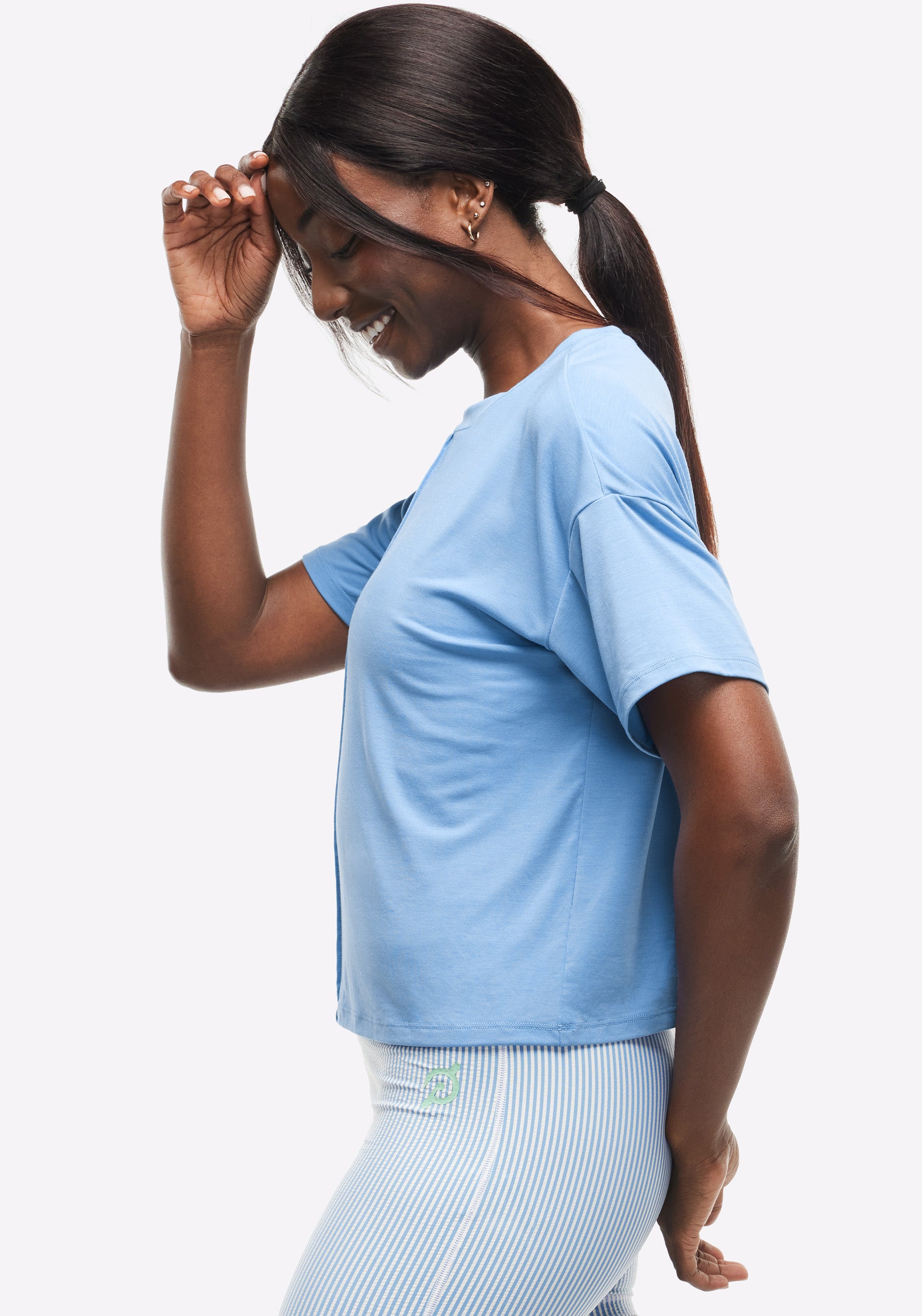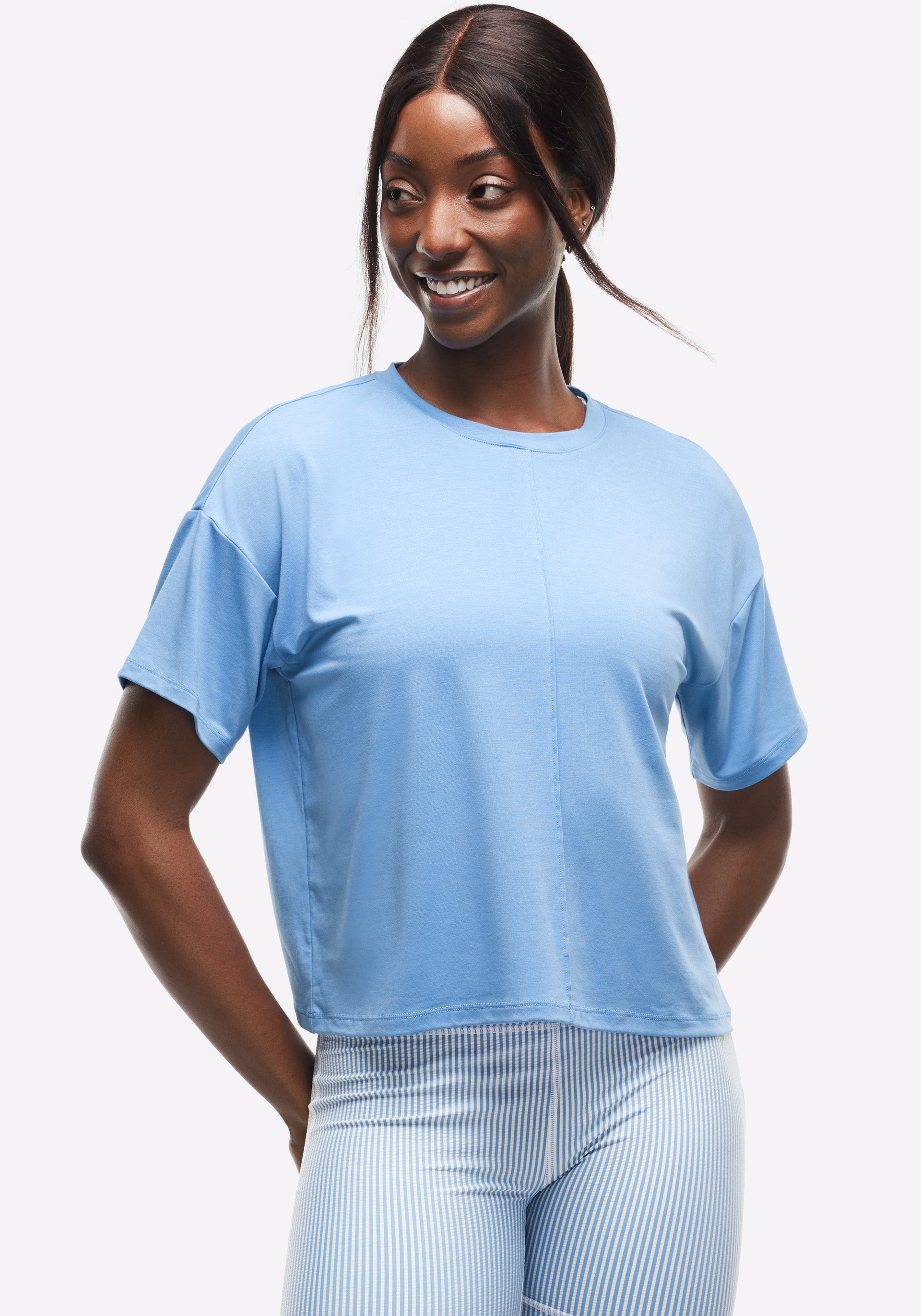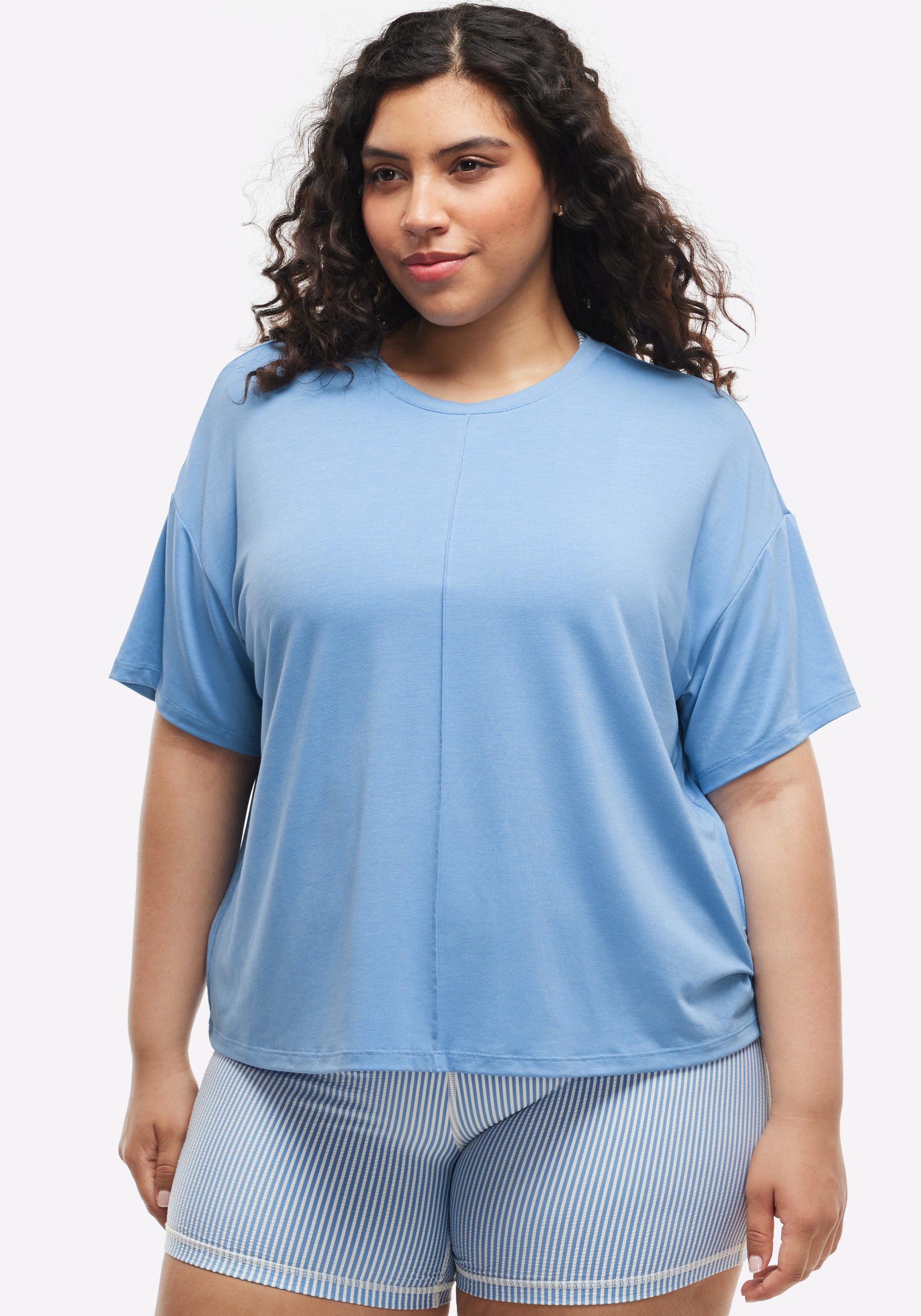 • Relaxed, crewneck short sleeve with pintuck detail and a meet and greet length
