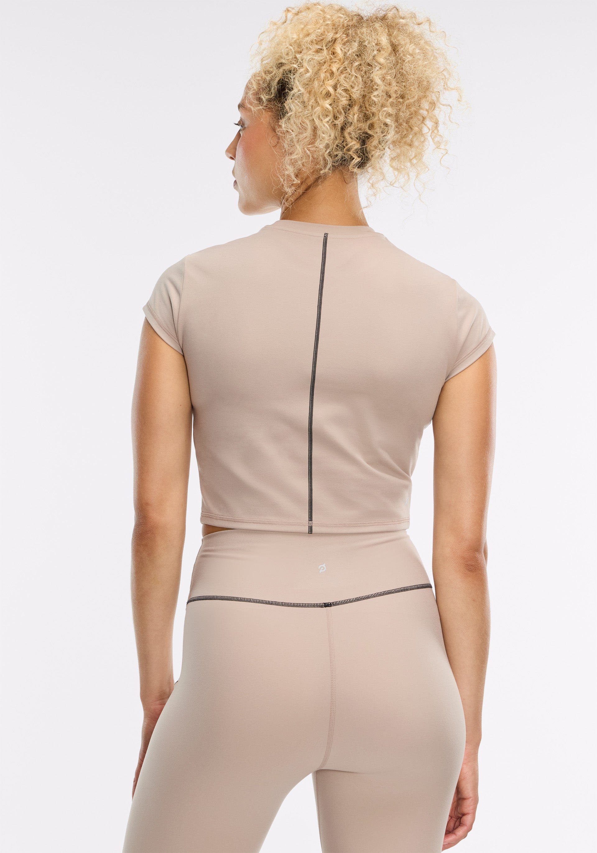 • Short-sleeve with contrast seam detail and a meet and greet length