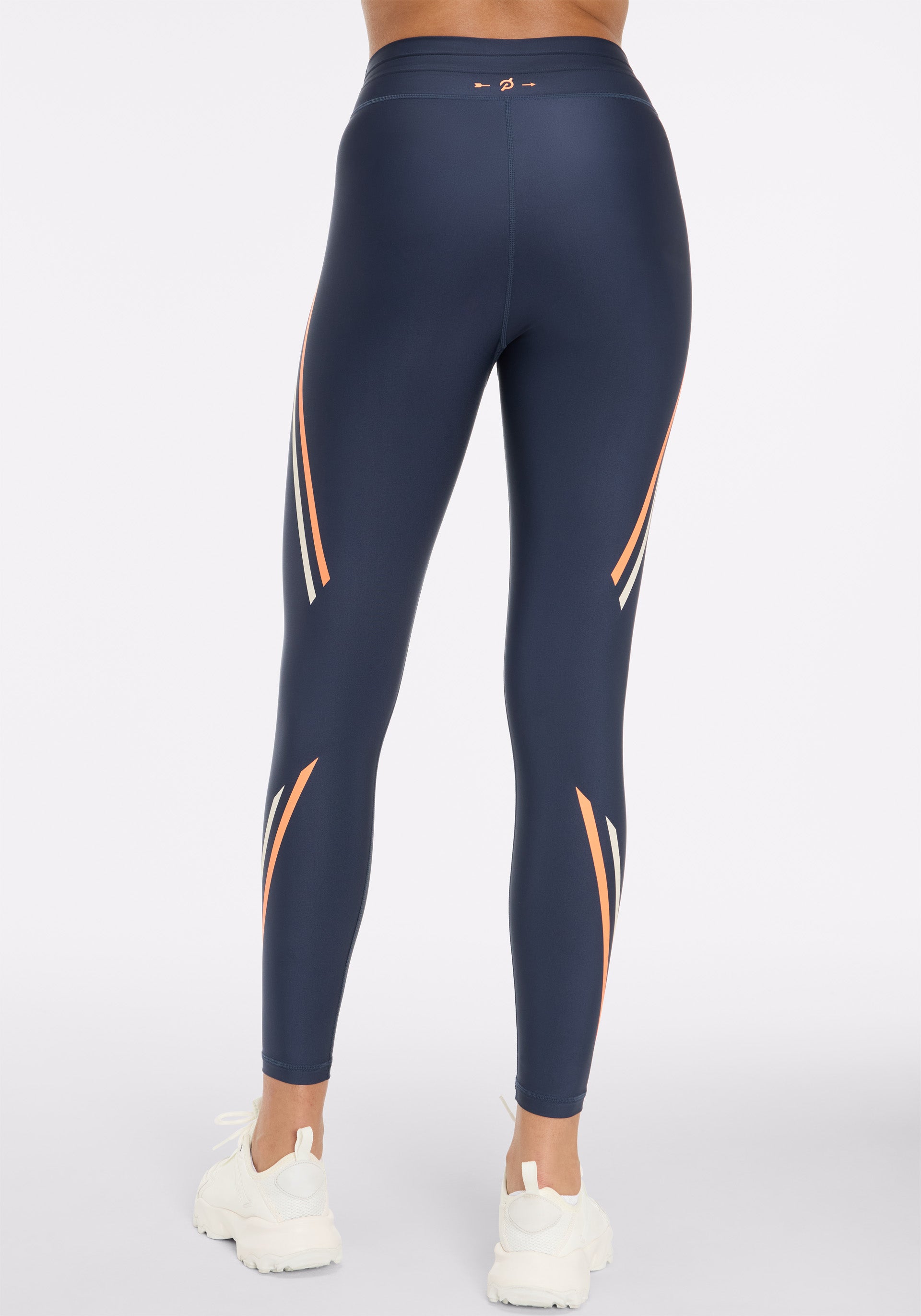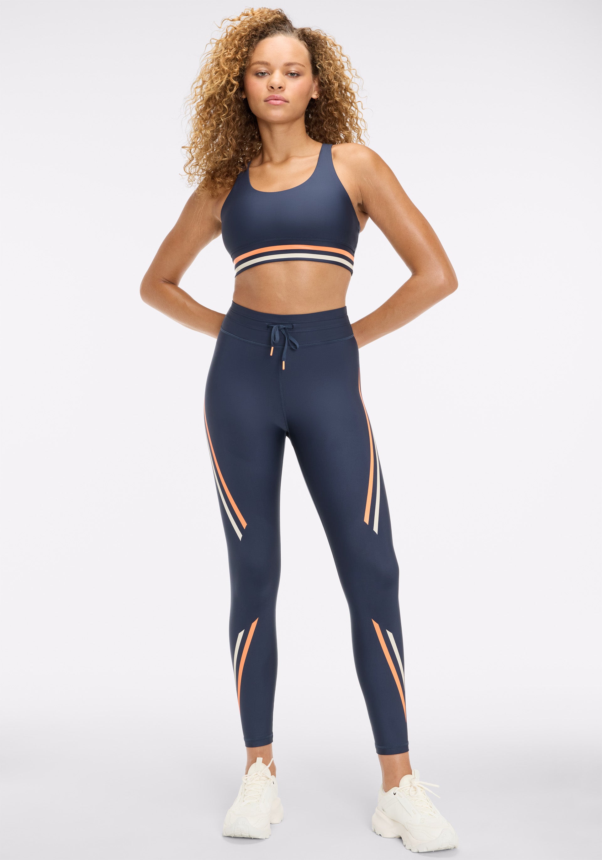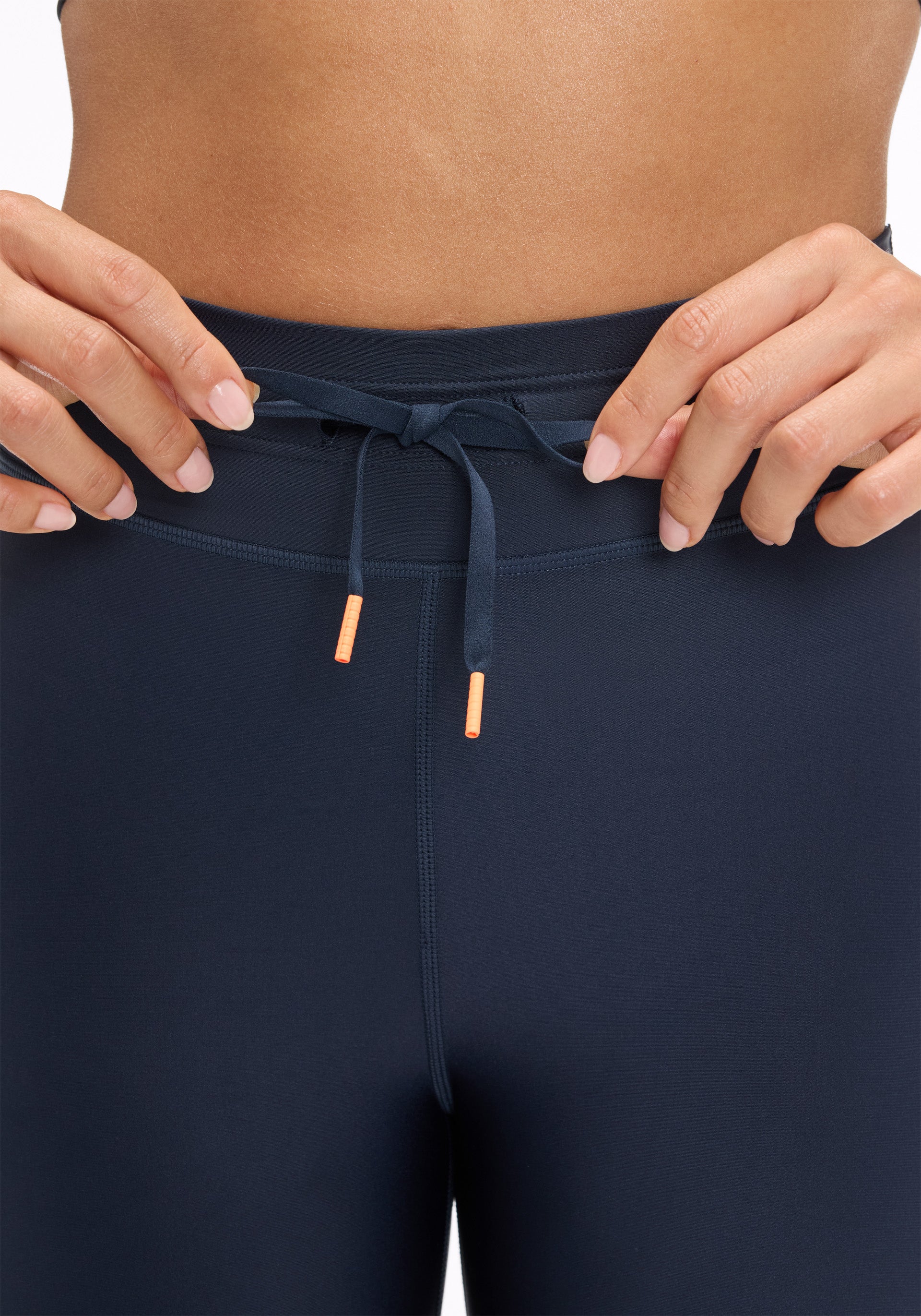 Mid-rise, 25" legging with elasticated drawcord at waist and contrast stripe detail at side