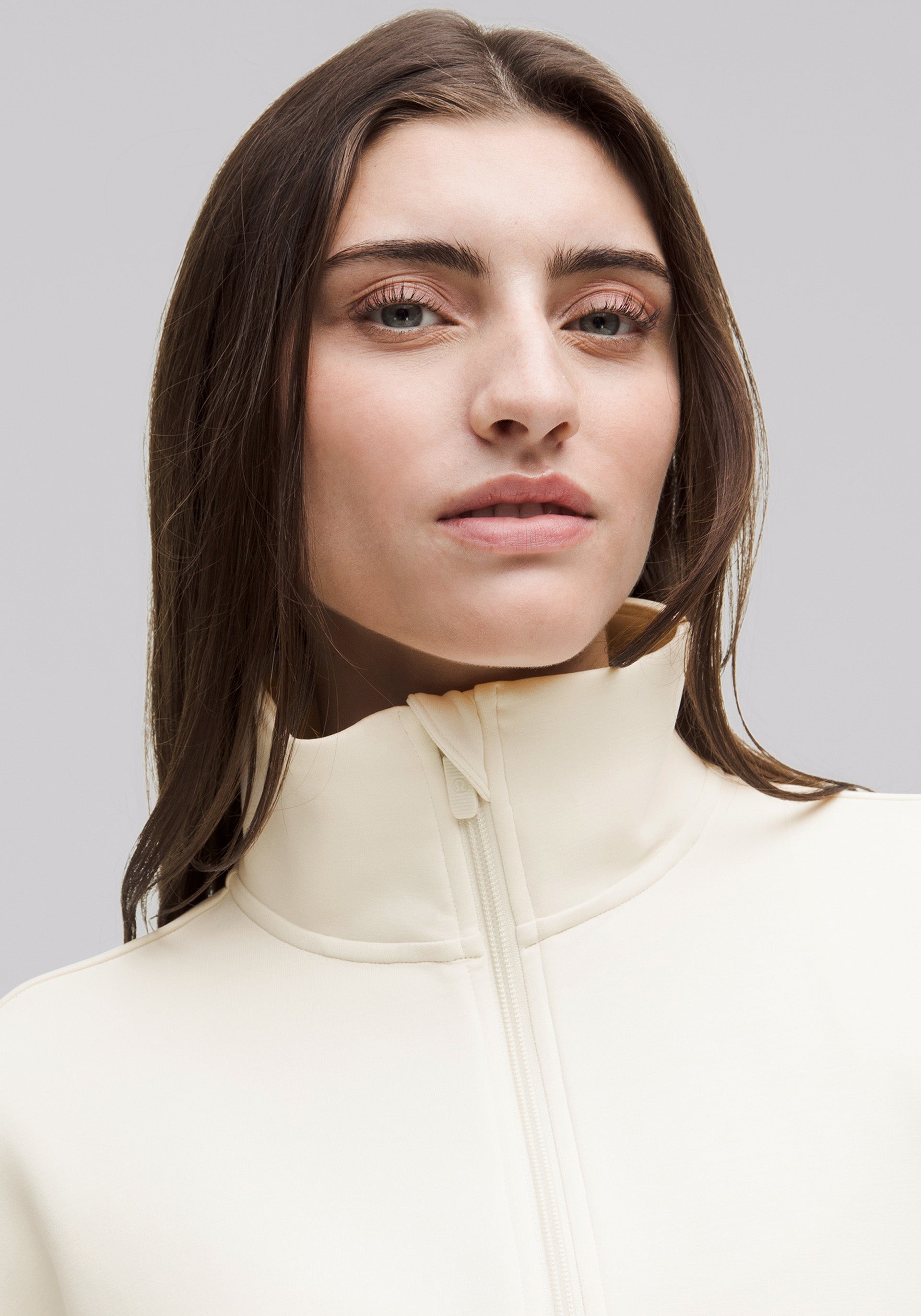 Softstreme™ Fabric has a peach-fuzz soft texture with four-way stretch, a weighty drape, and quick-drying properties. This product contains recycled polyester made from repurposed plastic waste.