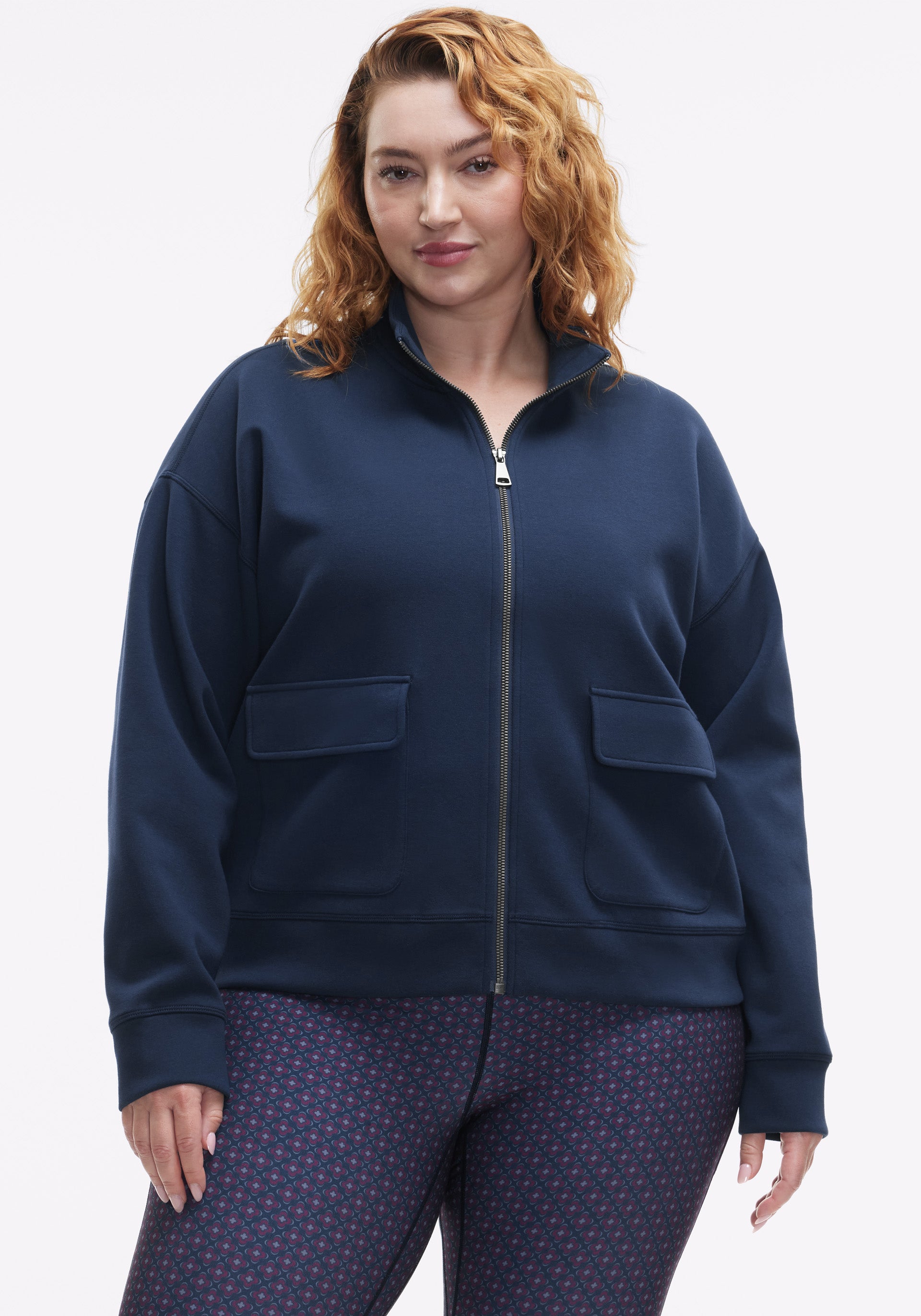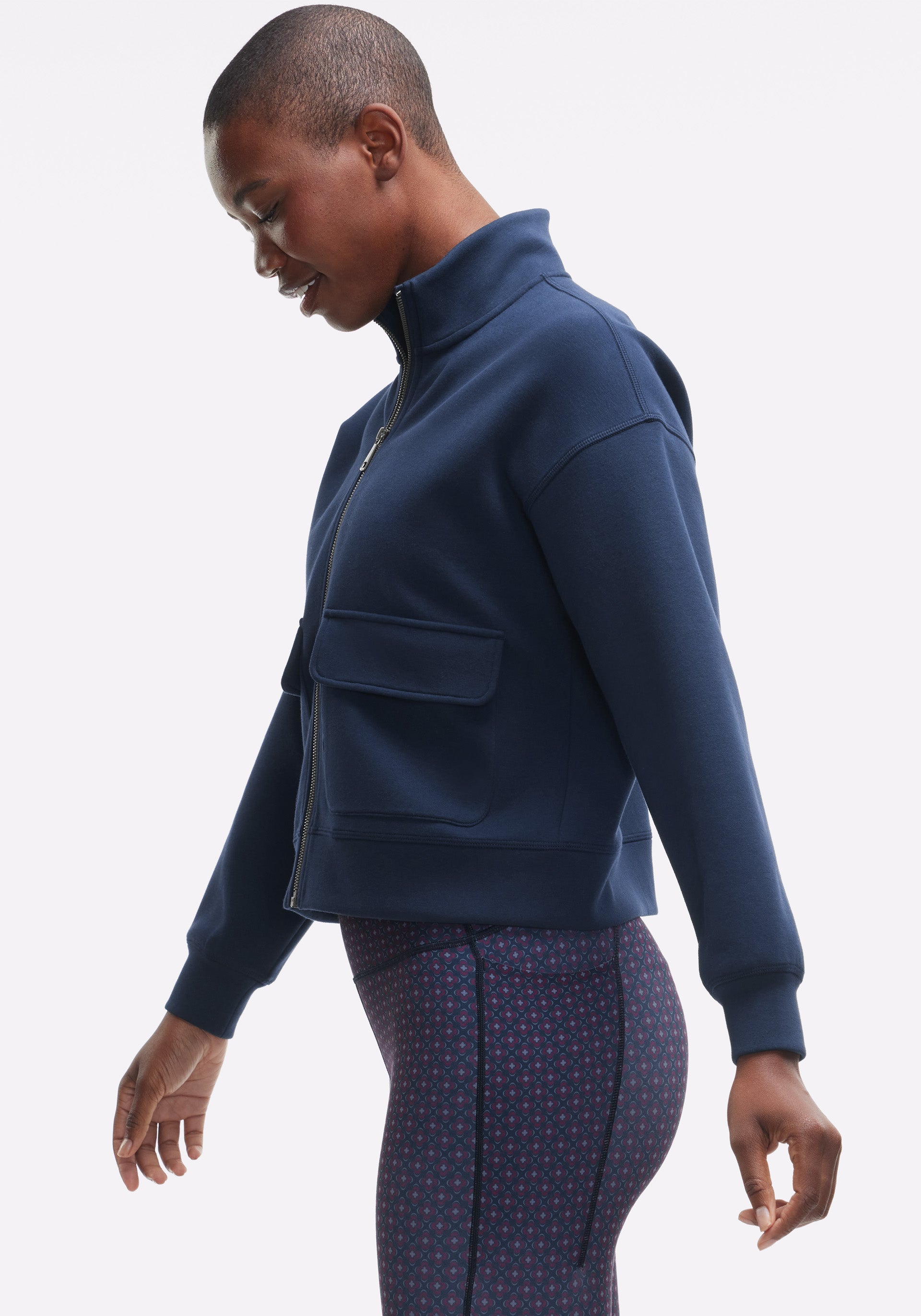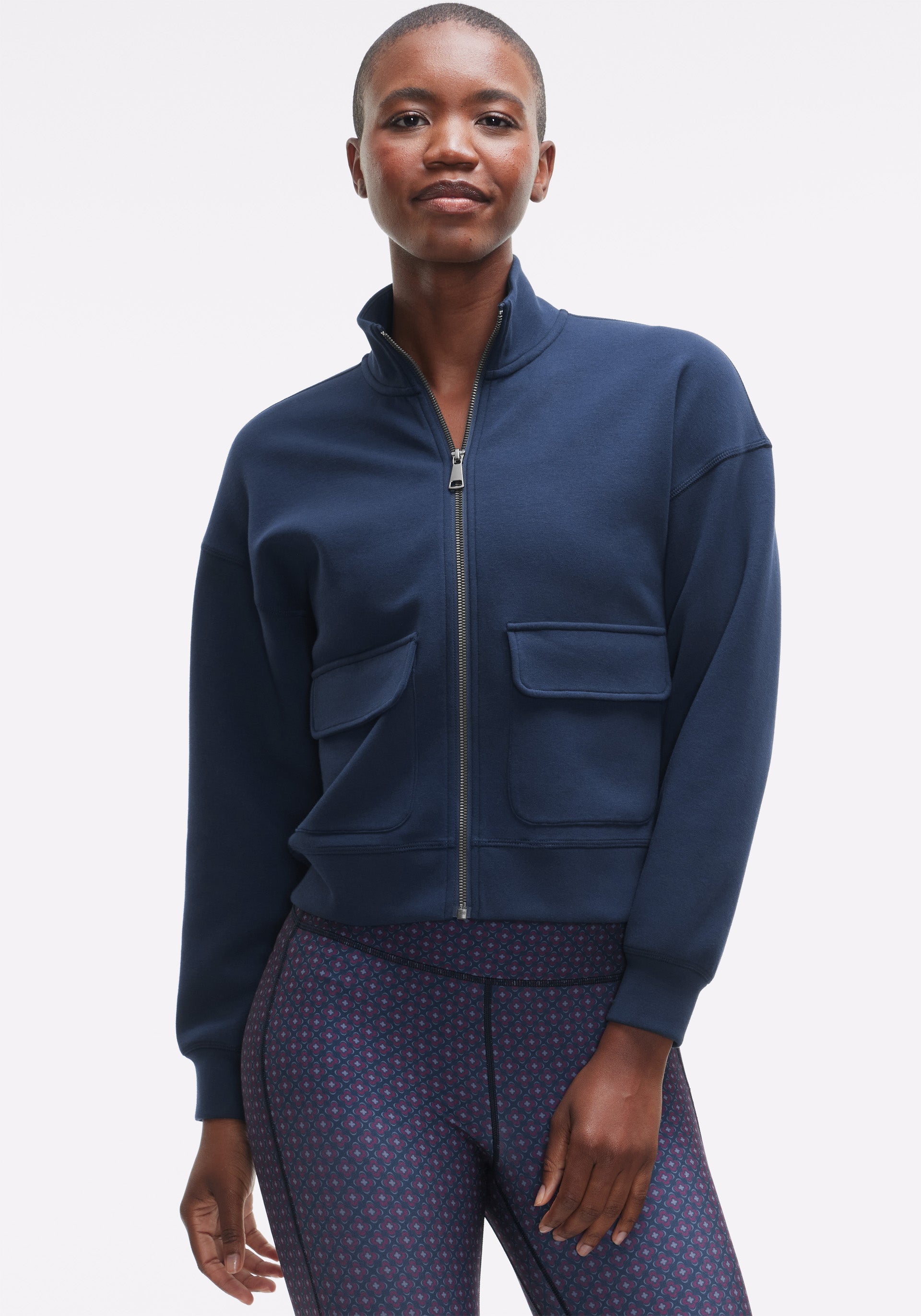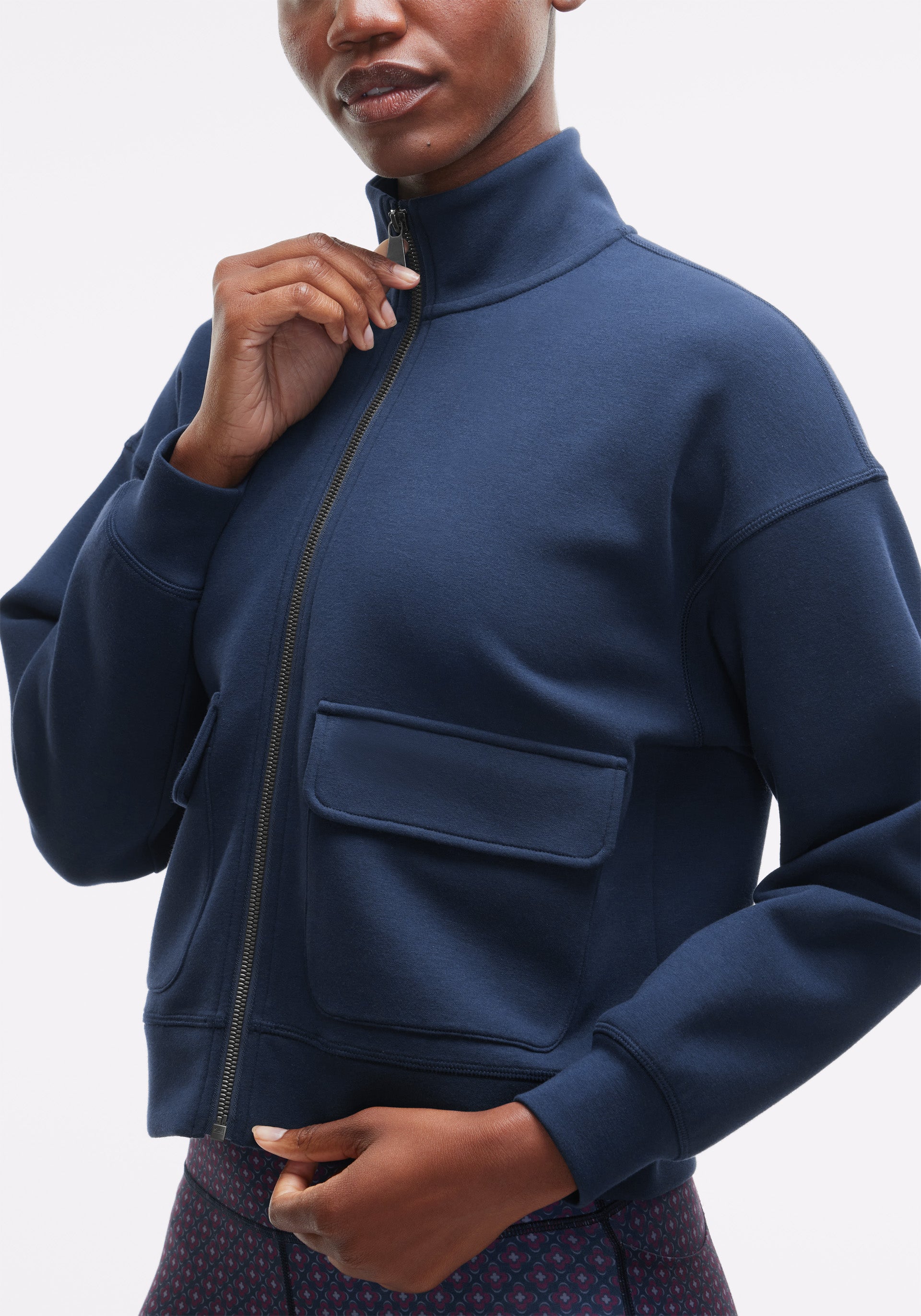 • Mock neck, full zip jacket with front cargo pockets and self cuffs and bottom band