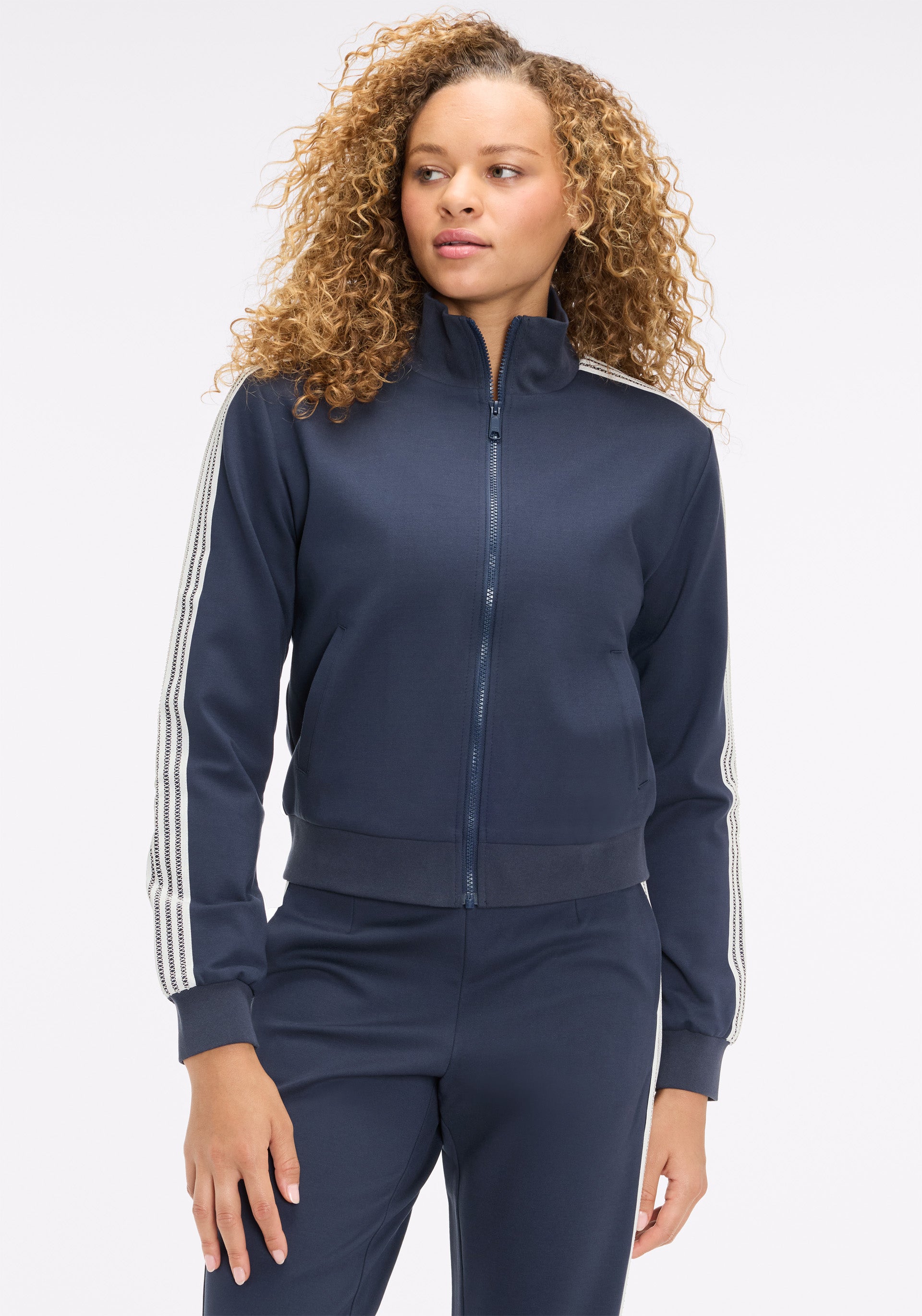 • Full-zip jacket with functional welt pockets, lattice tape at sleeves, and rib detail at neckline, hem, and cuffs
