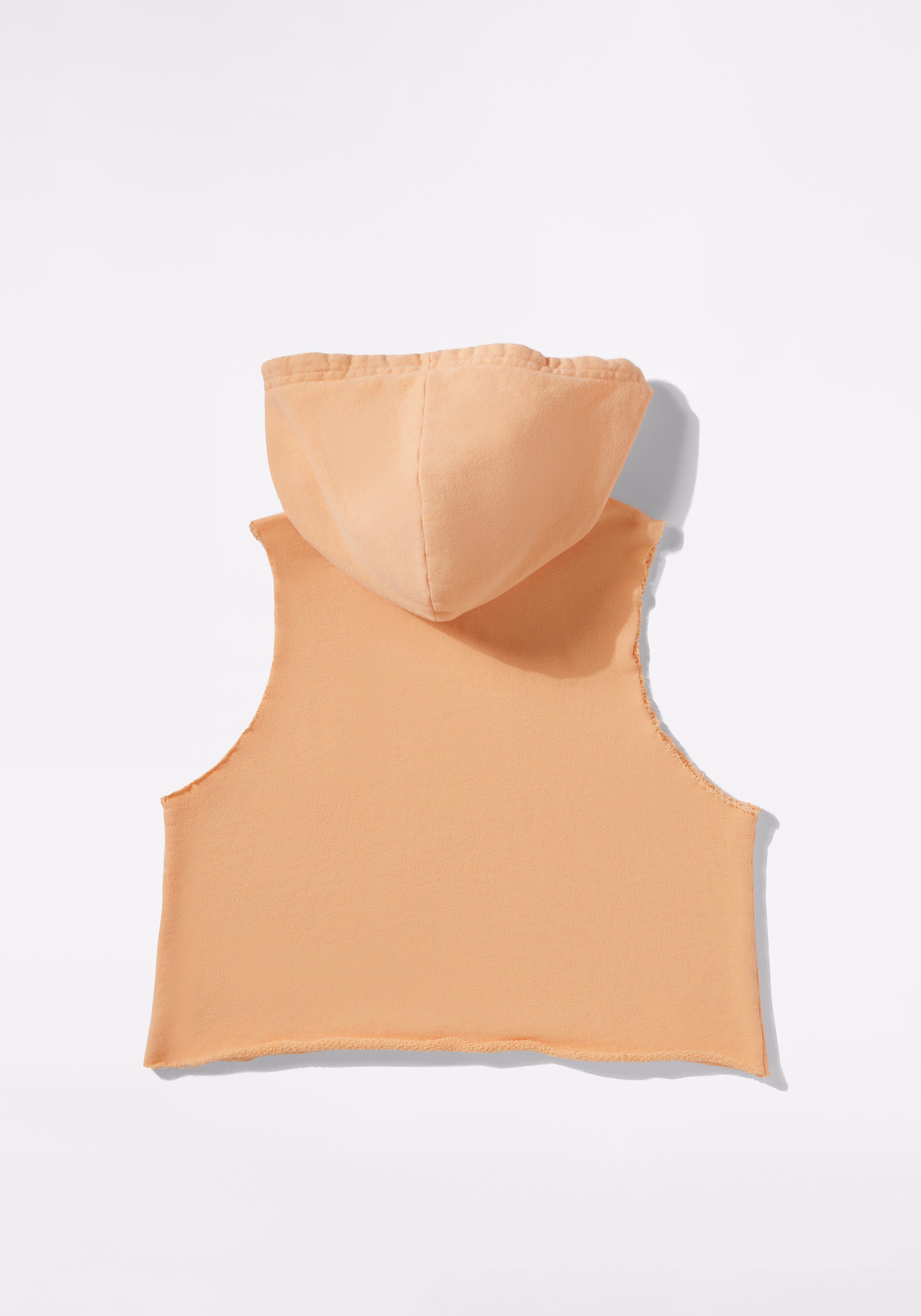 • Cropped muscle tank hoodie with raw cut hem and armhole