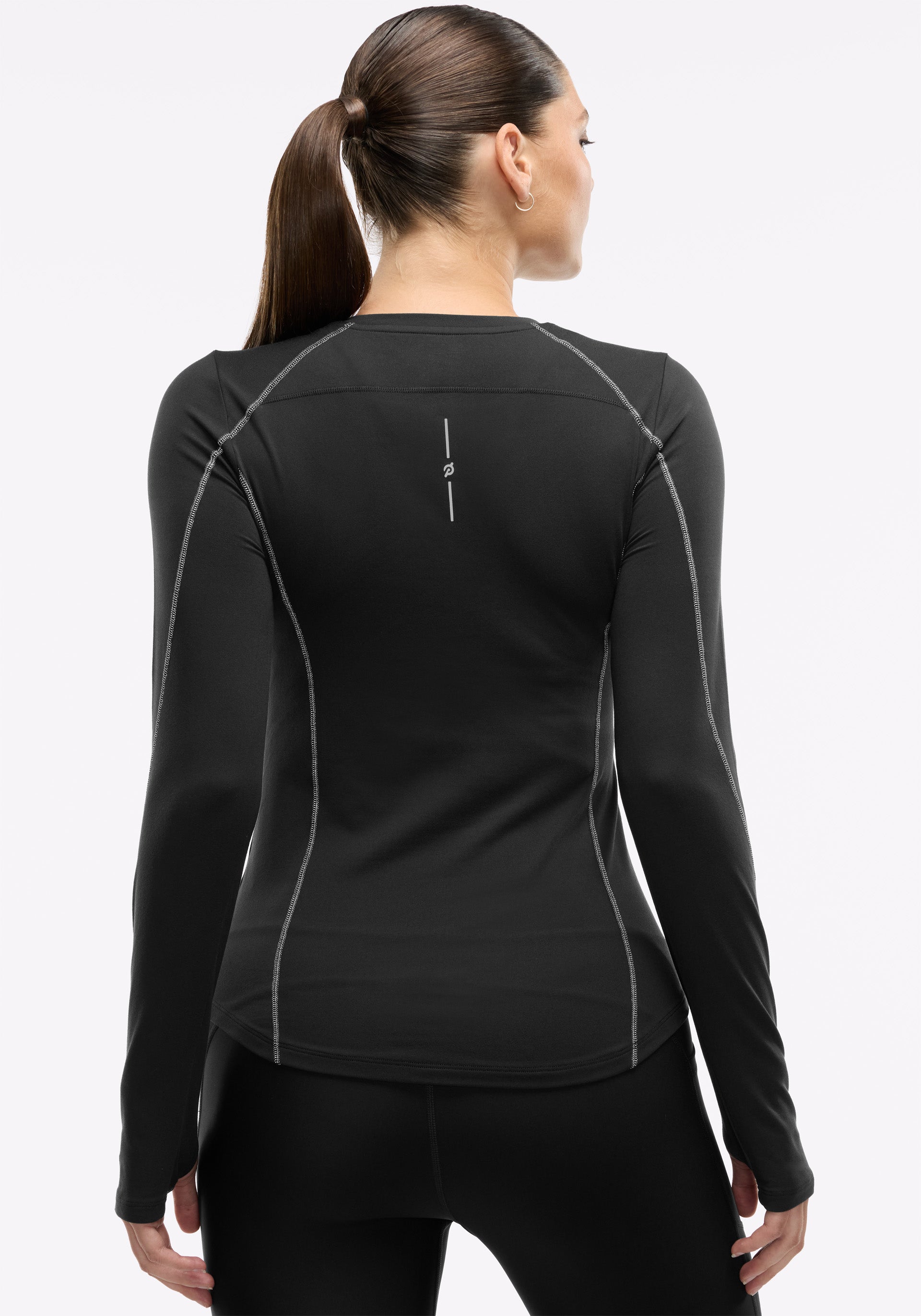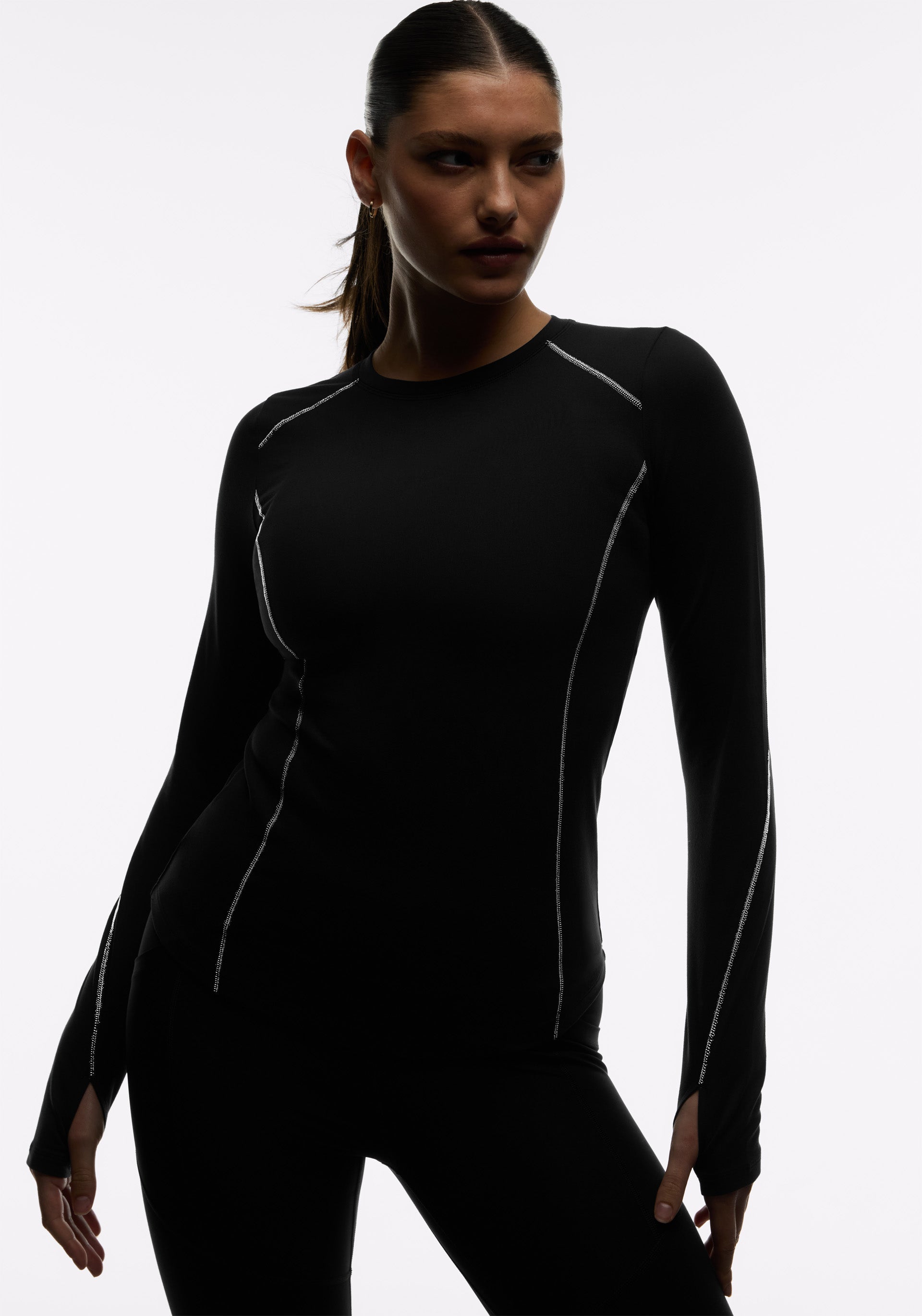 Crewneck long sleeve with reflective contrast style lines and thumbholes
