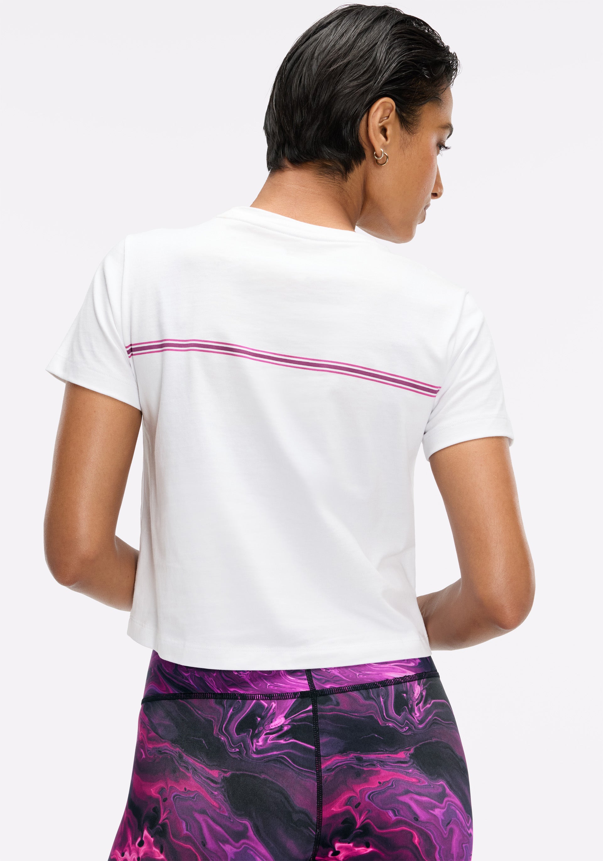Baby tee that hits just below the waist with striped graphic across chest