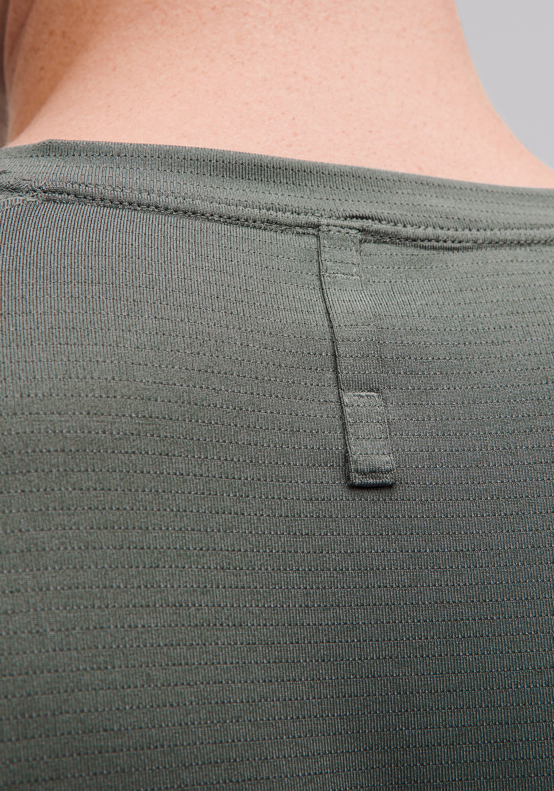 Crewneck, long sleeve with underarm gusset for greater mobility and locker loop for easy hanging